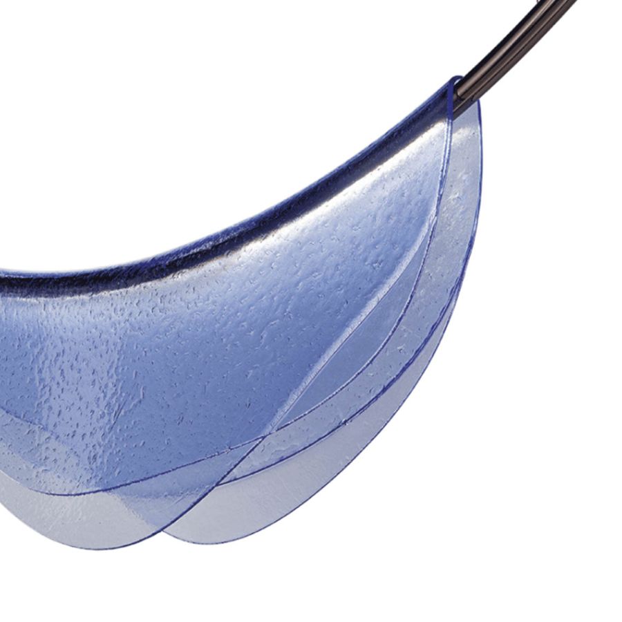 Pendant lamp with thermoformed glass and metal structure with iron grey finish. Available in different colours: amethyst, blue, grey and green.