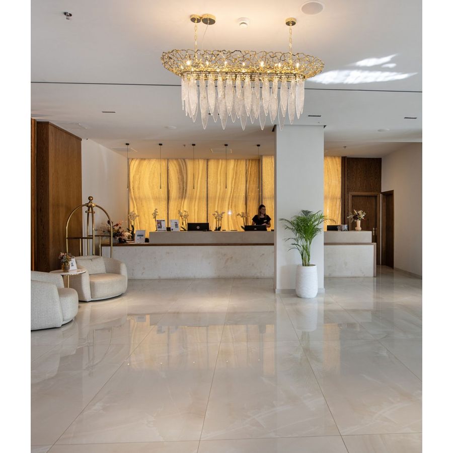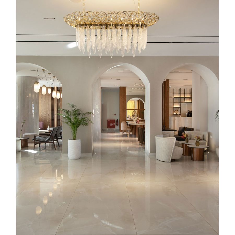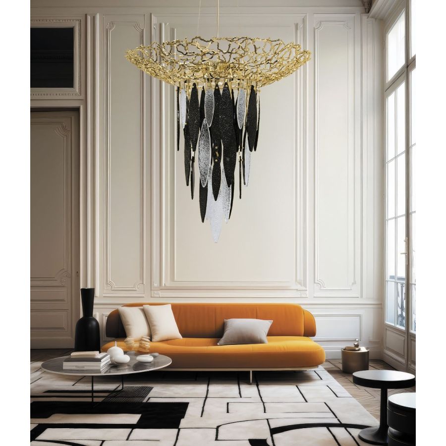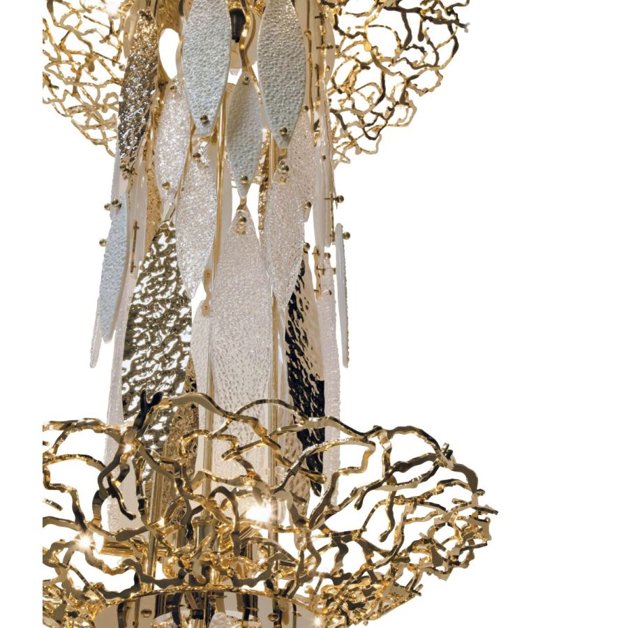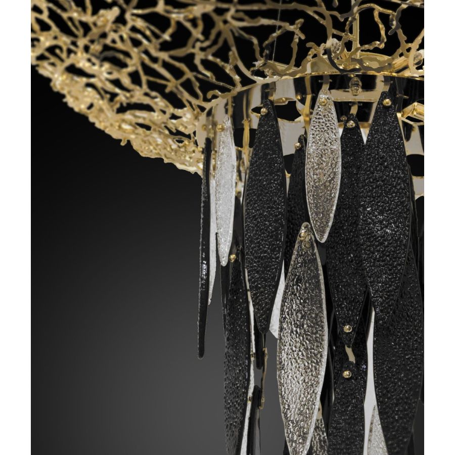 The regalness of gold and interwoven metal come together with Murano glass leaves to deliver highly prestigious decorative effects.
