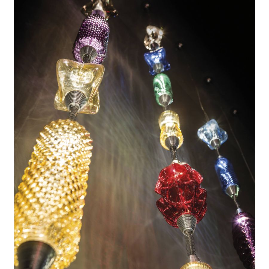 Innovative modular system designed by Marc Sadler for Italamp, consisiting in blown glass elements in different shapes and colours.