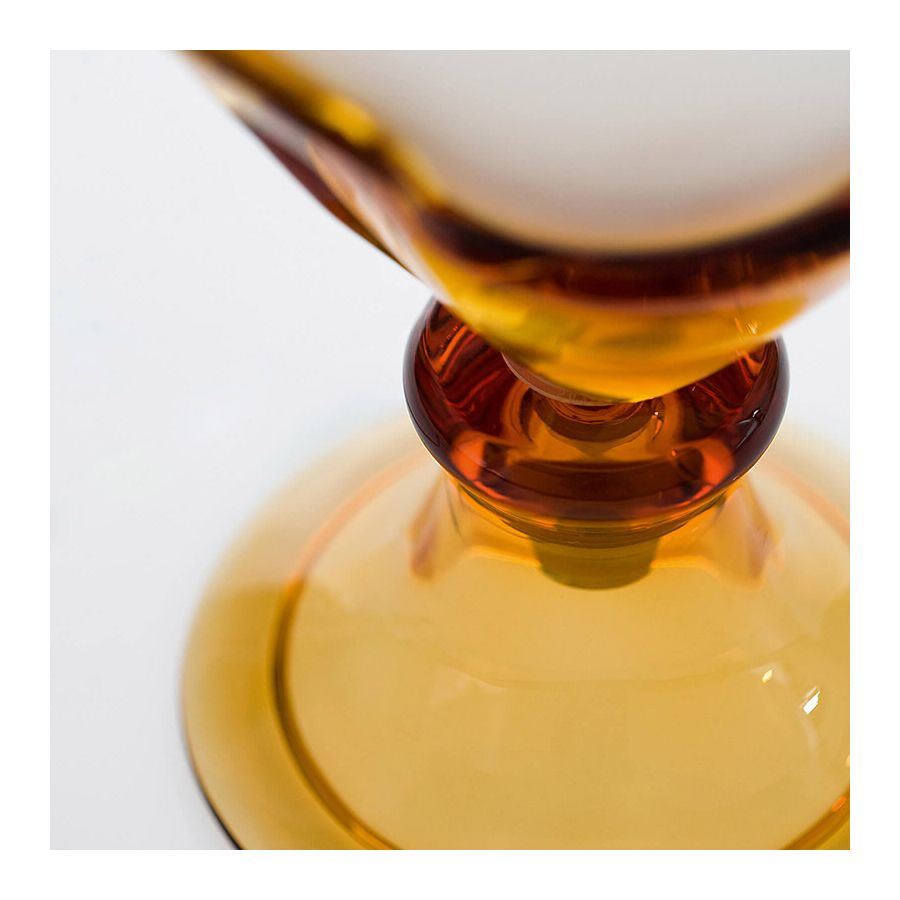 Table lamp in overlaid crystal with clear or amber crystal base, ivory fabric shade. Metal details with nickel finish.