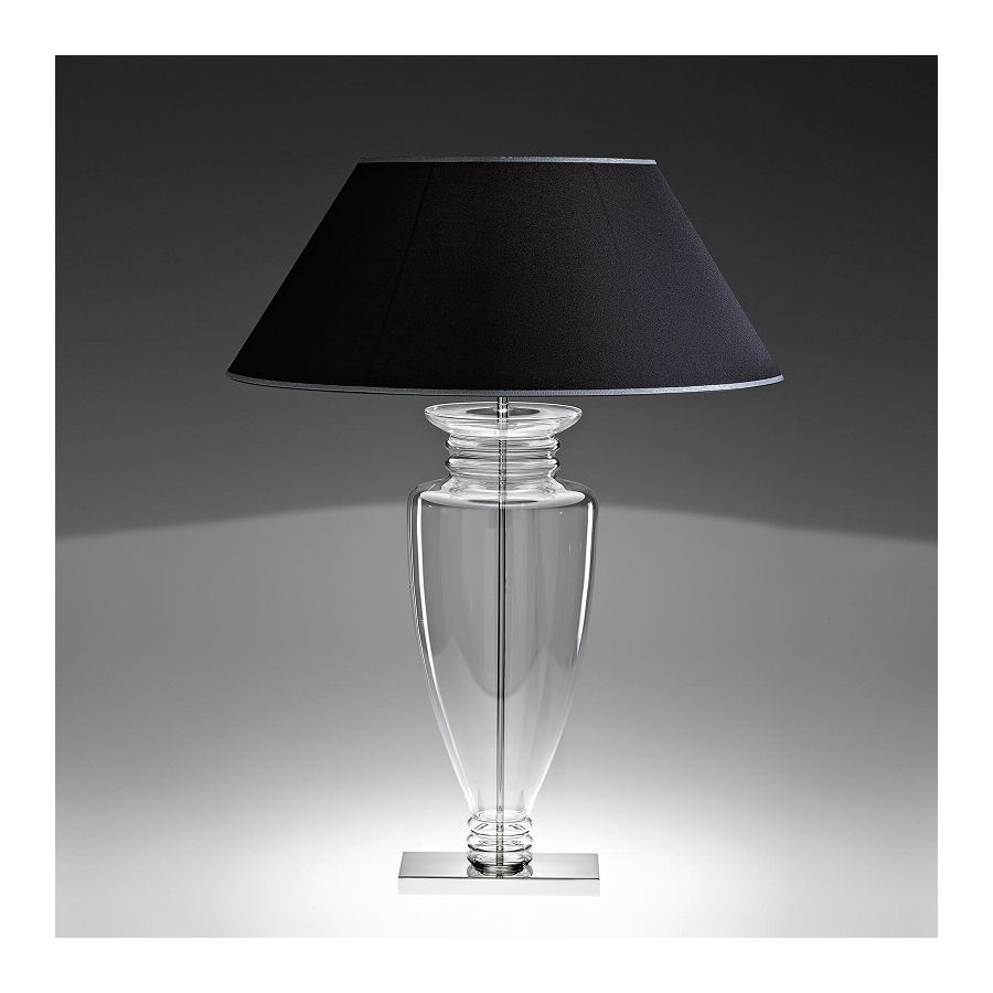 Table lamp in blown glass with metal base in nickel finish. Black fabric shade.