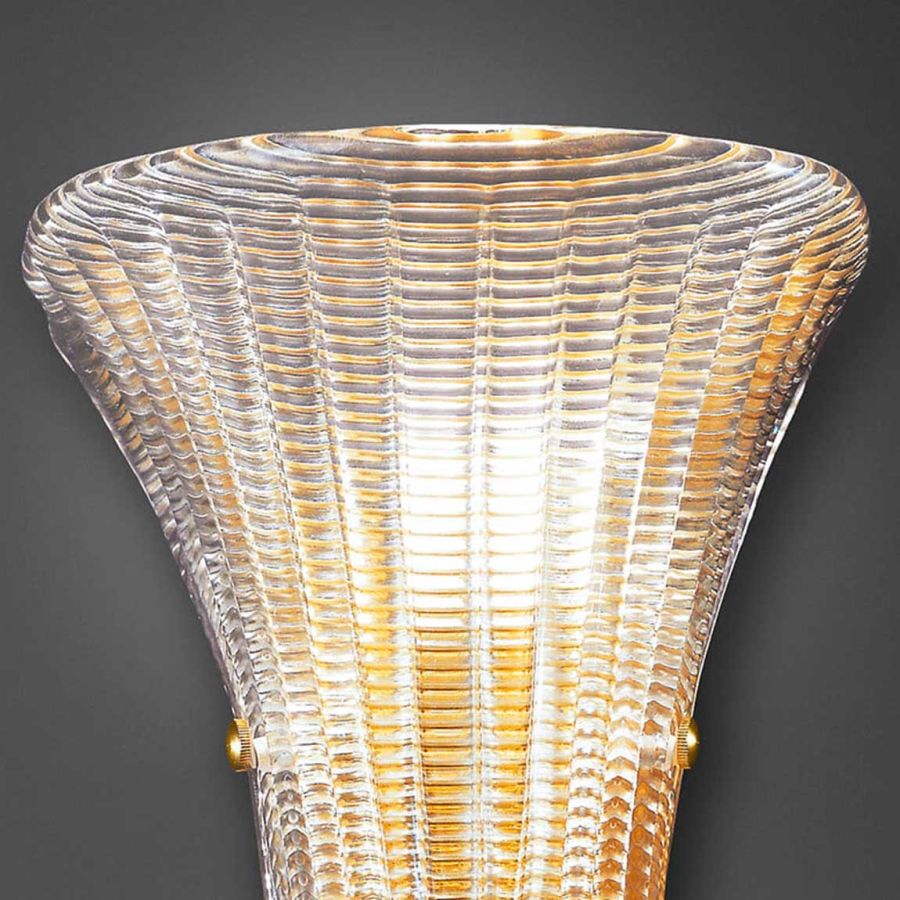 Wall lamp in topaz diamond-cut glass with gold details. Available in different colours.