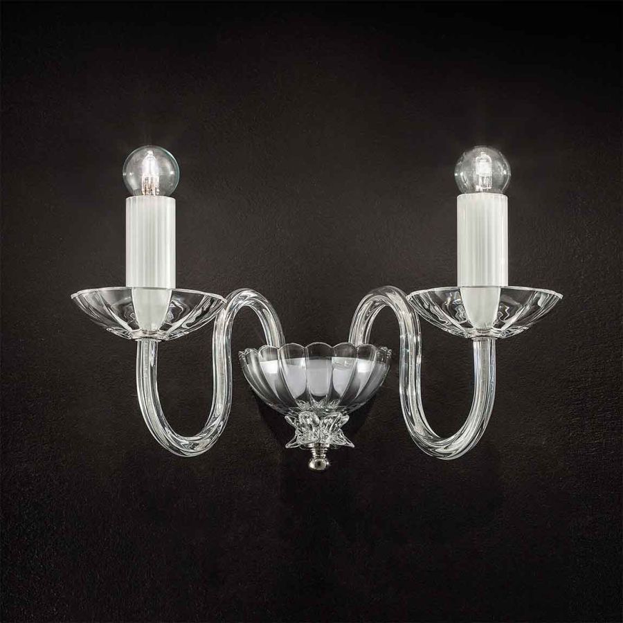 Wall lamp in crystal and glass, metal with nickel finish. Available in different colours.