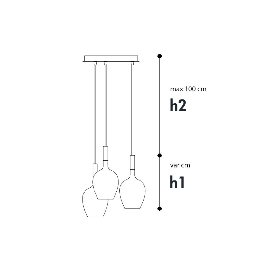 cm.: H1/var + H2/100 x 33 x 33 / inch.: H1/var + H2/39.4" x 13" x 13"