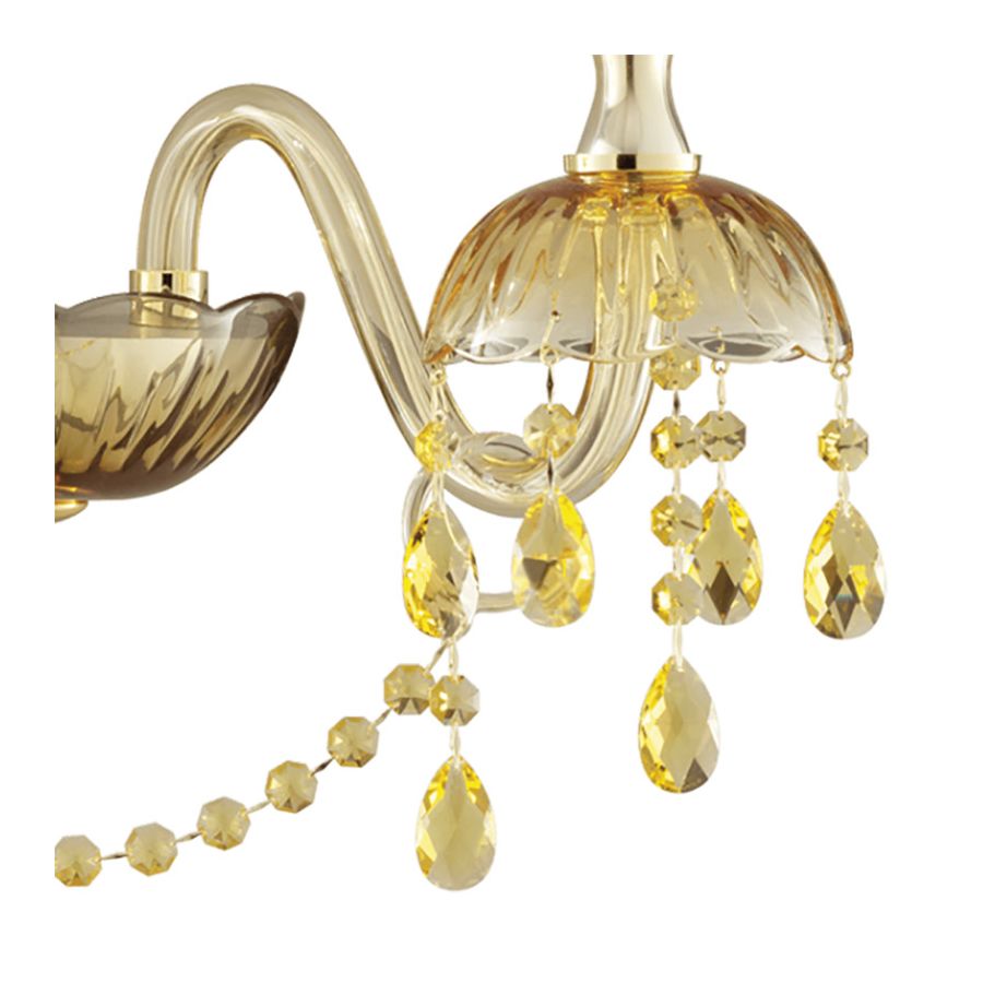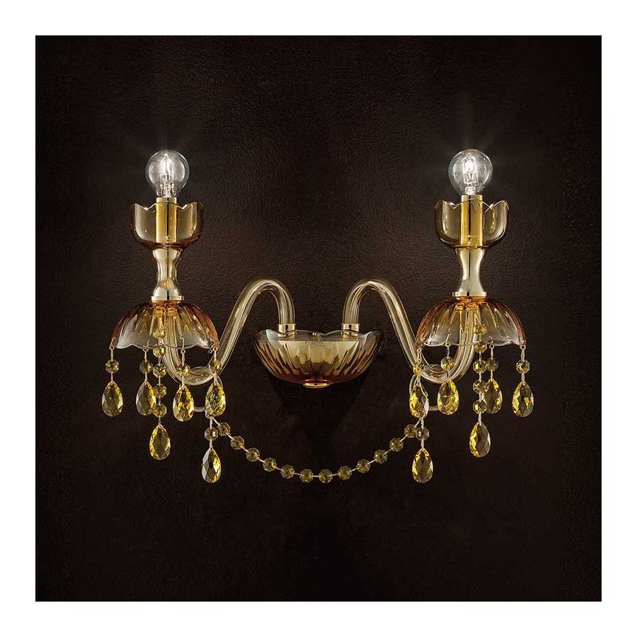 Wall lamp in amber carved crystal and glass, metal with gold finish, Swarovski elements pendants.