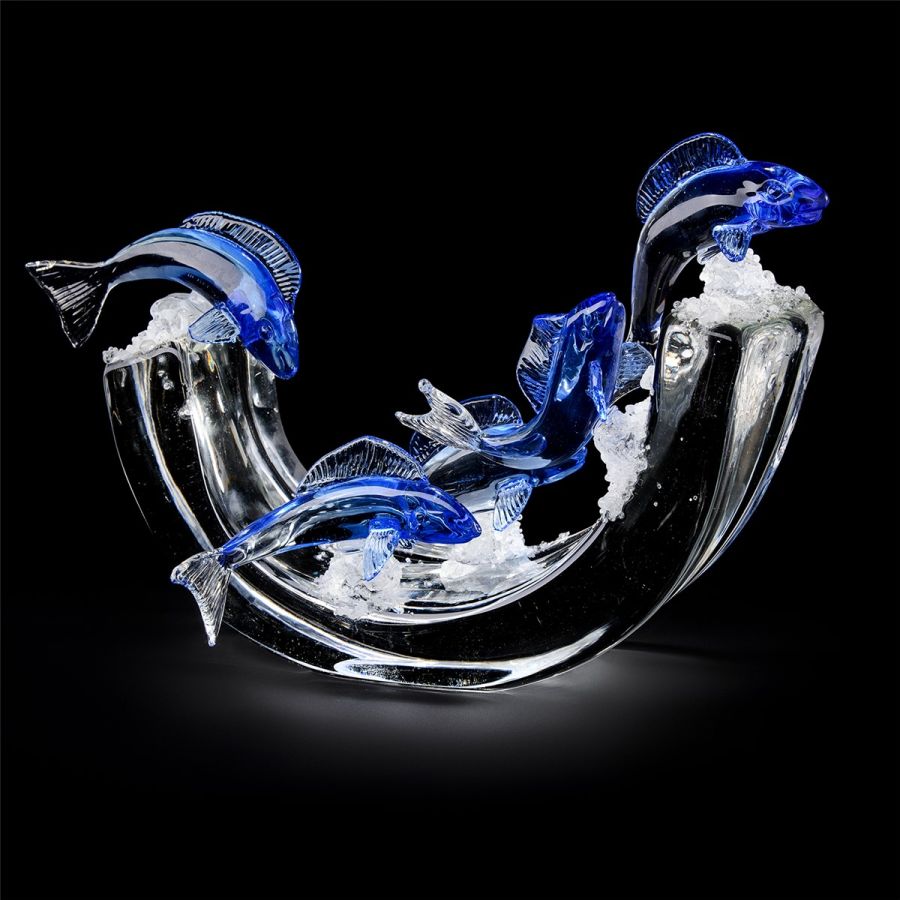 Italian Luxury Lighting / Abstract Sculptures / Wave With Fish in Murano Glass 6060 1 COL