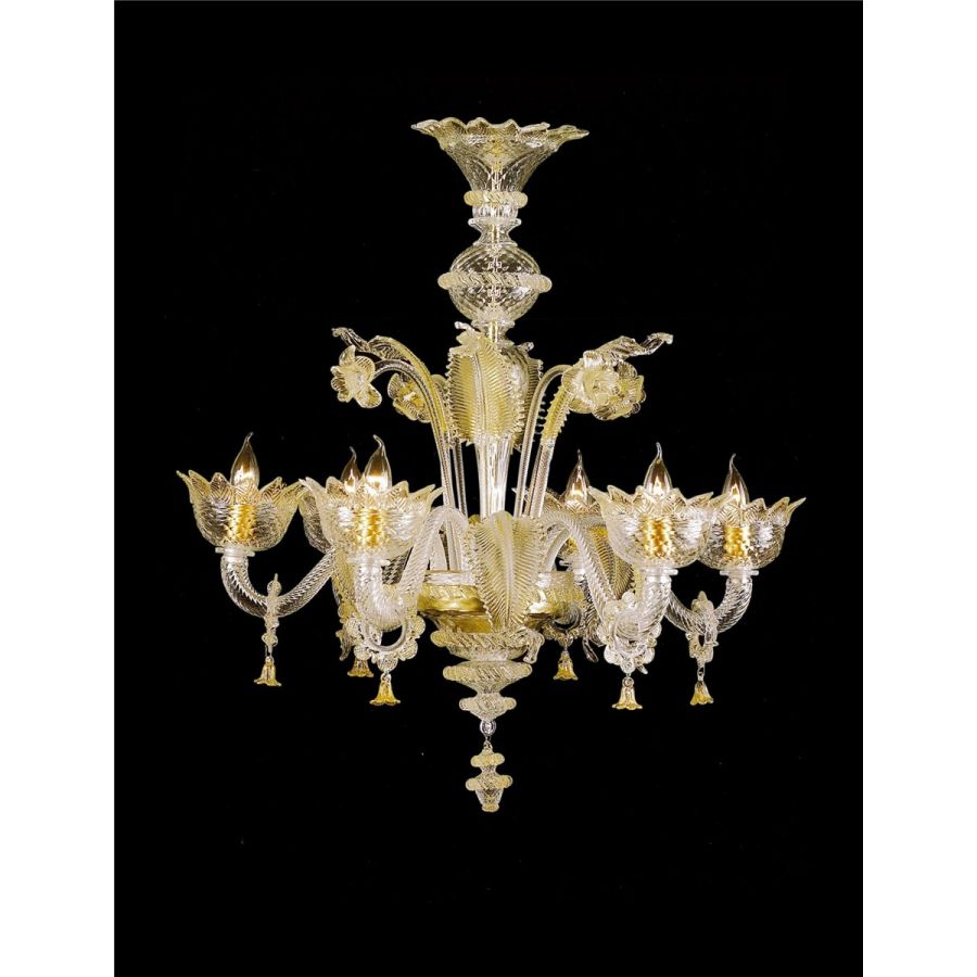 - Italian Luxury Lighting / Chandeliers / Venetian Glass Amber 6-Light V7467 006