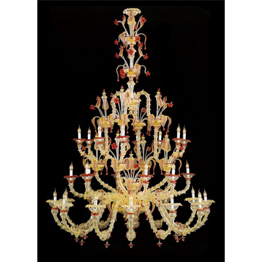 - Italian Luxury Lighting / Chandeliers / Venetian Glass Gold And Red 20-Light V6003 020