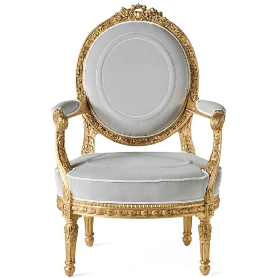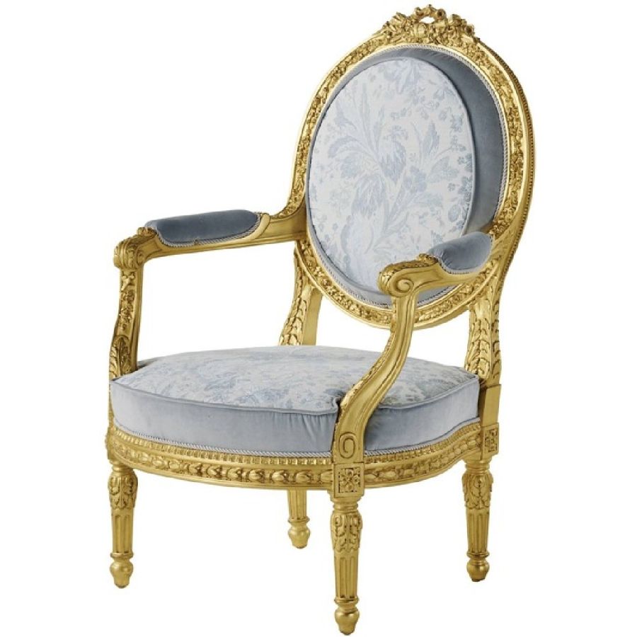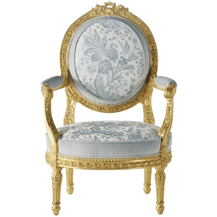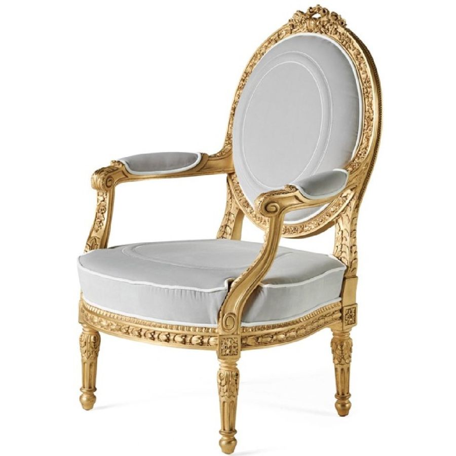 Bouquet is a refined armchair that reinterprets the traditional canons of craftsmanship, lightened in shapes and artistry, as well as in the nuances that characterize its style. The hand-carved wooden structure, distinguished by an antiqued gold finish with patina, is enriched by precious details. The fabric upholstery is adorned with tone-on-tone piping and relief embroideries that decorate the backrest and seat cushion. A perfect expression of Jumbo Collection's heritage, Bouquet seamlessly integrates into contemporary settings, offering an unparalleled experience of comfort and style.