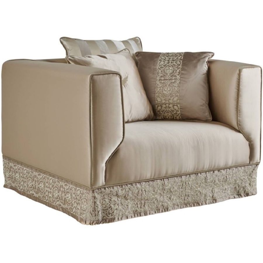 Elegant and comfortable, Broderie is an armchair with a classic and sophisticated style, characterized by the upholstery in the fine fabrics of the collection, enhanced by the band with decorative embroidery. Thanks to its timeless appeal, the armchair is able to fit gracefully into different contexts.