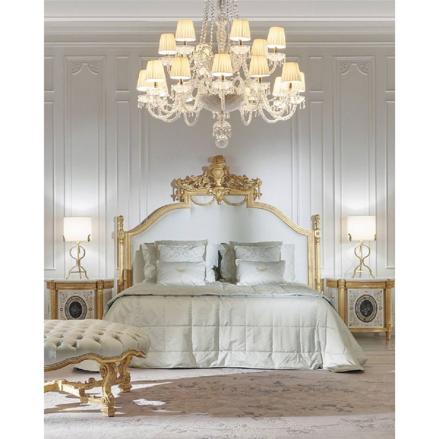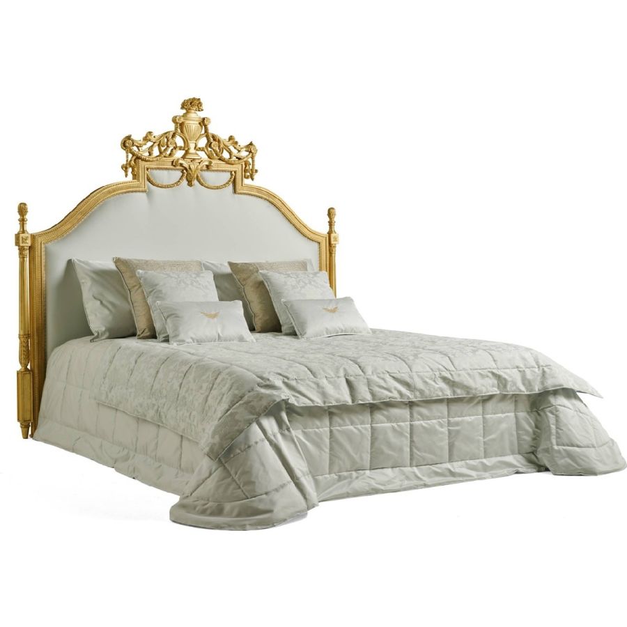 Couronne is a classic French-style bed that epitomizes Jumbo Collection heritage. The bed showcases meticulous attention to detail, expert craftsmanship, and opulent materials. The grand headboard, hand-carved from beechwood and adorned with a patinated antique gold finish, enhances the graceful contours of the bed. A piece of furniture exuding an air of elegance and sophistication, the ideal choice for creating a regal and lavish ambiance in the bedroom.