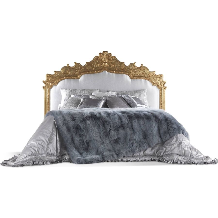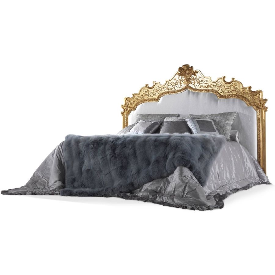 A line of furnishings in Baroque style, perfect expression of Jumbo Collection's decorative spirit and craftsmanship heritage. The bed of the Fragonard line is characterized by a headboard with hand made low-relief carvings finished in antique gold and by precious upholstery in the fabrics of the collection.