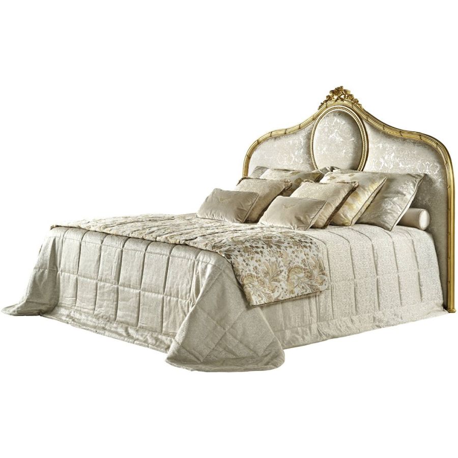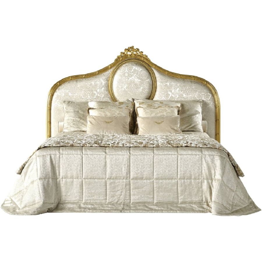 A celebration of classic grandeur, the Guirlande bed is defined by its sculptural presence and exquisite decorative detailing. The softly curved silhouette of the headboard evokes a sense of comfort and intimacy, while the central medallion adds a touch of ornamental splendour. Crafted in hand-carved beechwood with a patinated gold finish and upholstered in refined fabrics from the collection, this bed is designed to bring luxury and warmth to the most sophisticated interiors.