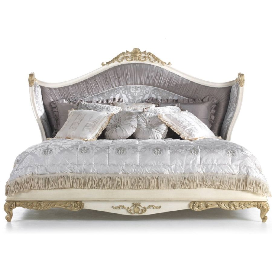 A line of furniture that expresses the charm and seduction of Jumbo Collections unique and unmistakable style. These high-quality beds, with their French charm, are characterized by important headboards with hand-made carvings and gold and ivory finishing, while the elaborate tailoring skills is expressed in the fabrics. A set of factors and details that gives life to a timeless collection, destined to leave its mark.