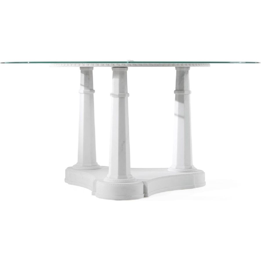 The superior quality of materials and the high level of craftsmanship, stand-out features of Jumbo collection, are perfectly embodied by the Relief table. This piece of furniture is made of statuario marble; an ancient and warm material, worked by hand with a special technique that allows classic 3D patterns to be created on tops and base units.