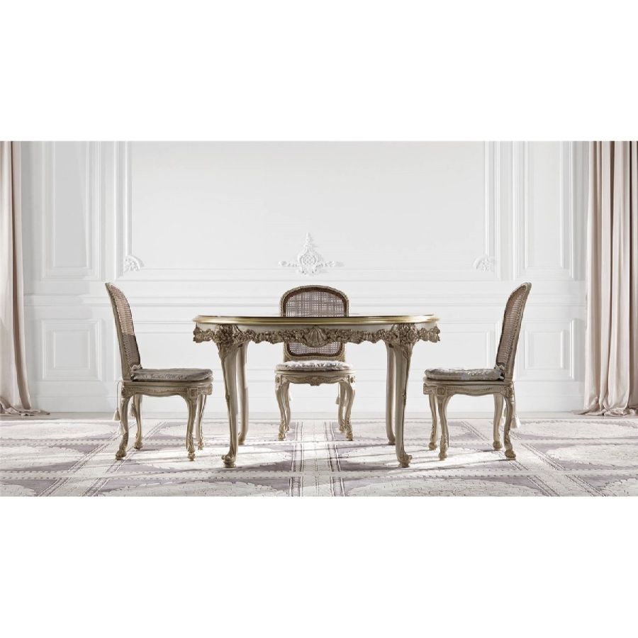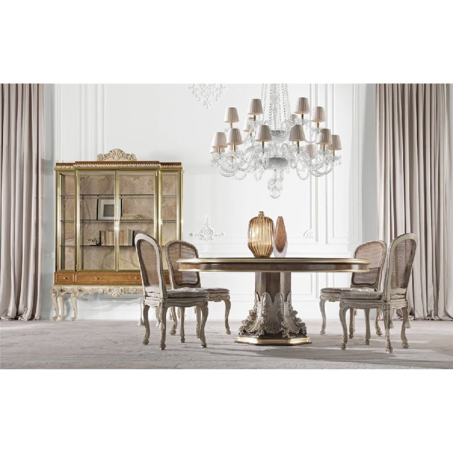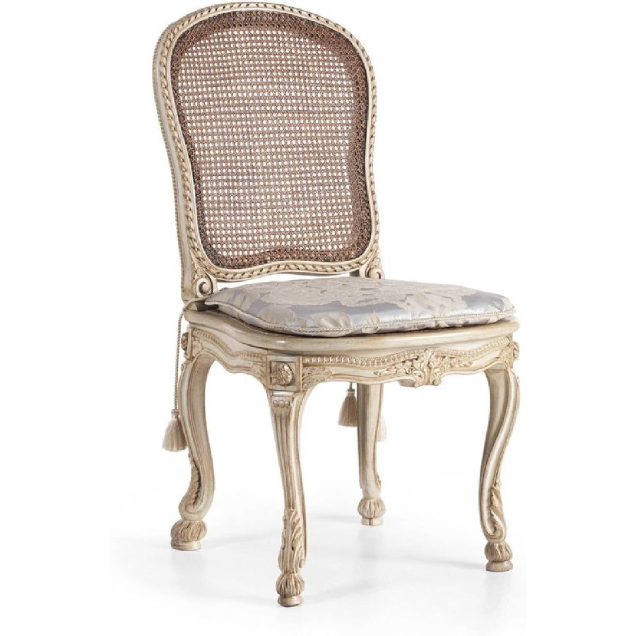 The majestic elegance of the rococo style in a refined line of furnishings that represents a real tribute to the most authentic classic style. The collection includes different types of chairs, characterized by hand-carved bases, refined tailoring, upholsteries in precious silks, Vienna straw component. Elaborate details such as lace or lam inserts design ornamental motif, enhancing the lines of the seats.
