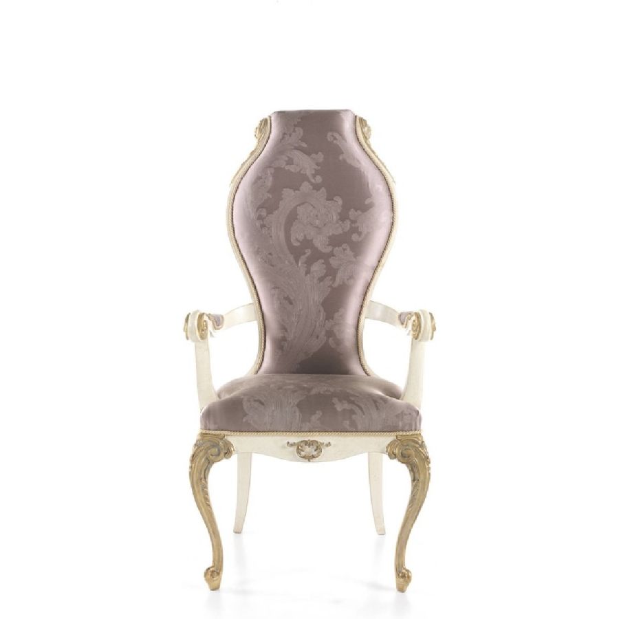 The majestic elegance of the rococo style in a refined line of furnishings that represents a real tribute to the most authentic classic style. The collection includes different elements, characterized by hand-carved bases, refined tailoring, upholsteries in precious silks, Vienna straw component. Elaborate details such as lace or lam inserts design ornamental motif, enhancing the lines of the seats.