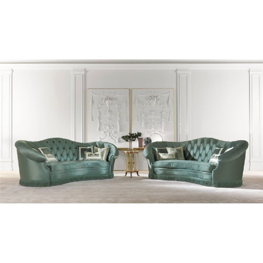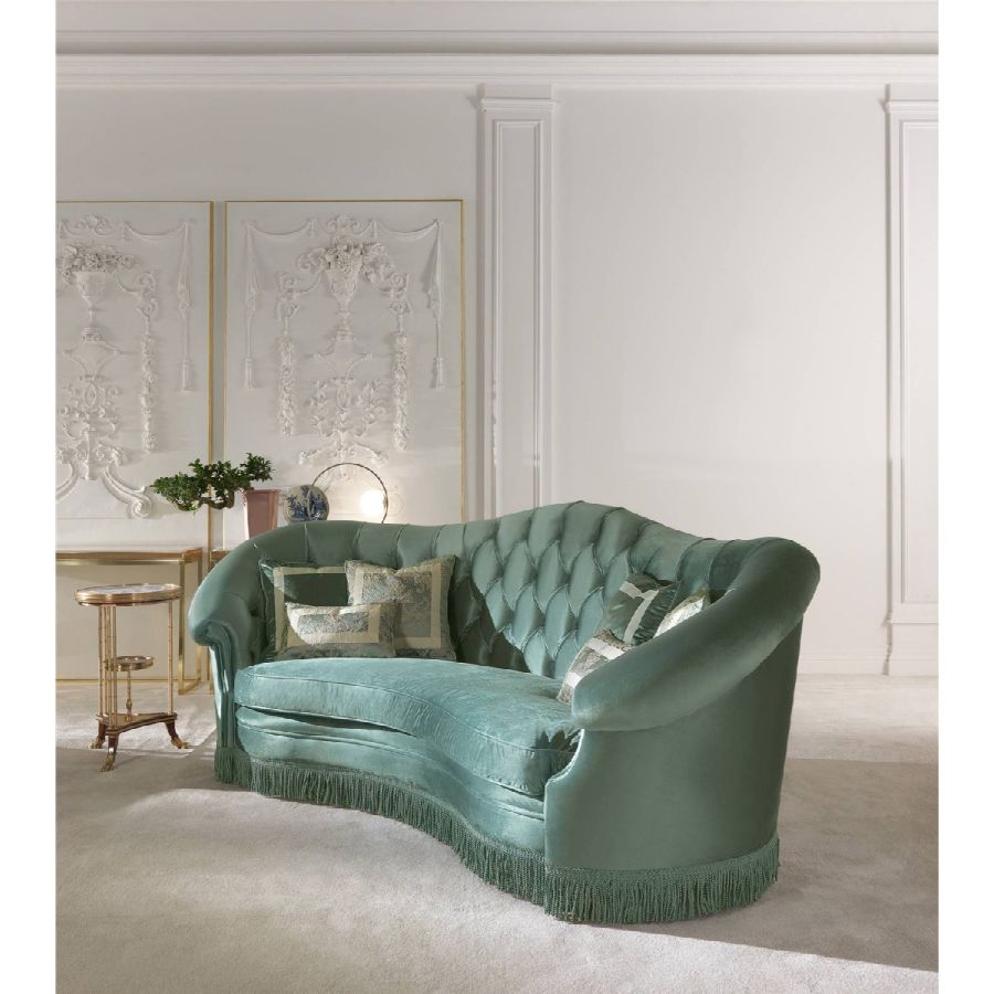 A timeless piece of furniture with traditional elements and decorations, such as the refined capitonn on the back and the ornamental fringe on the base. Olivia expresses an exclusive, classic style reminiscent of the splendour of French aristocratic palaces.