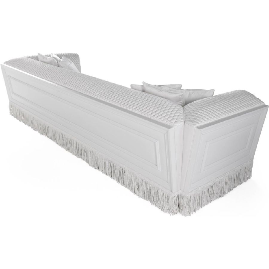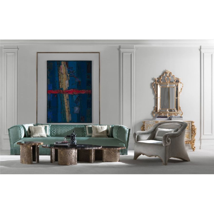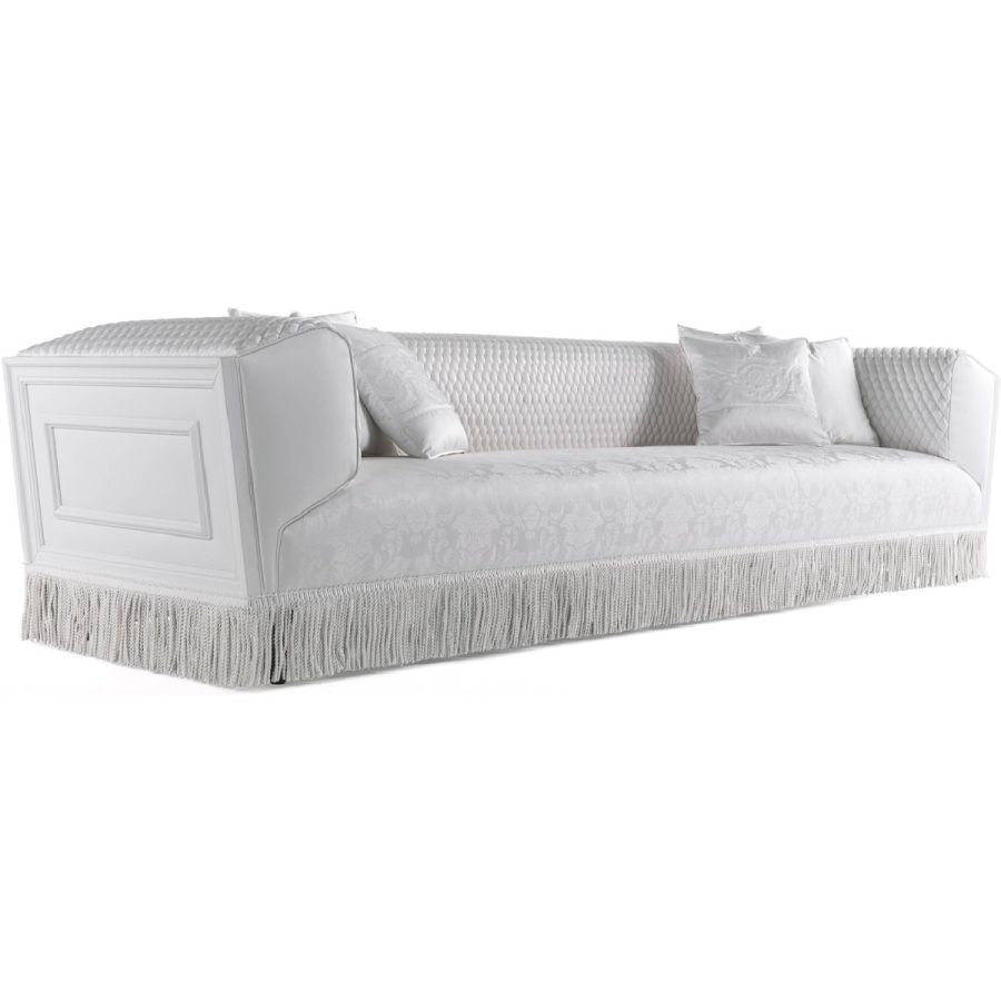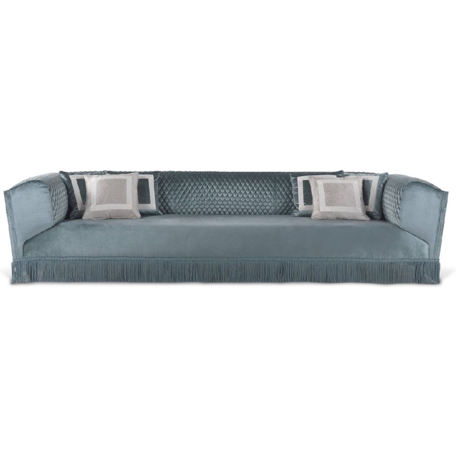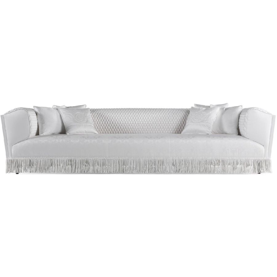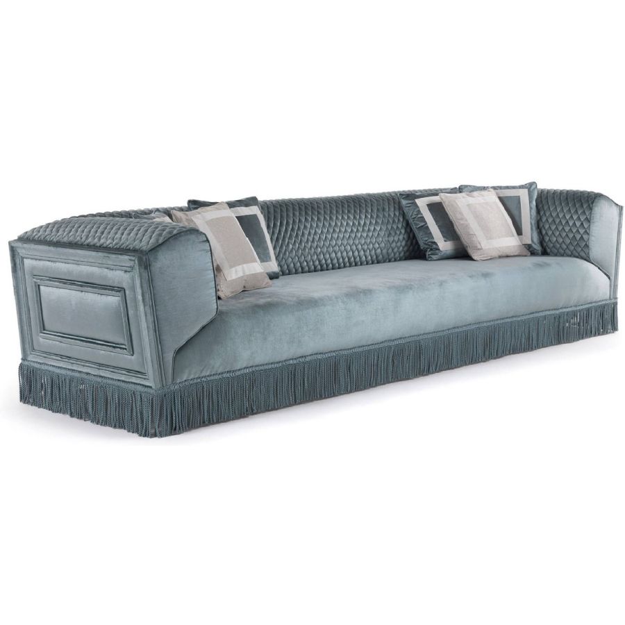 Clean and elegant elements define Saturno. a refined line of furniture whose soft shapes are enhanced by the precious workmanship of the backrest and by classic details such as the fringes: precious elements that tell the sartorial skill that characterizes the entire collection.