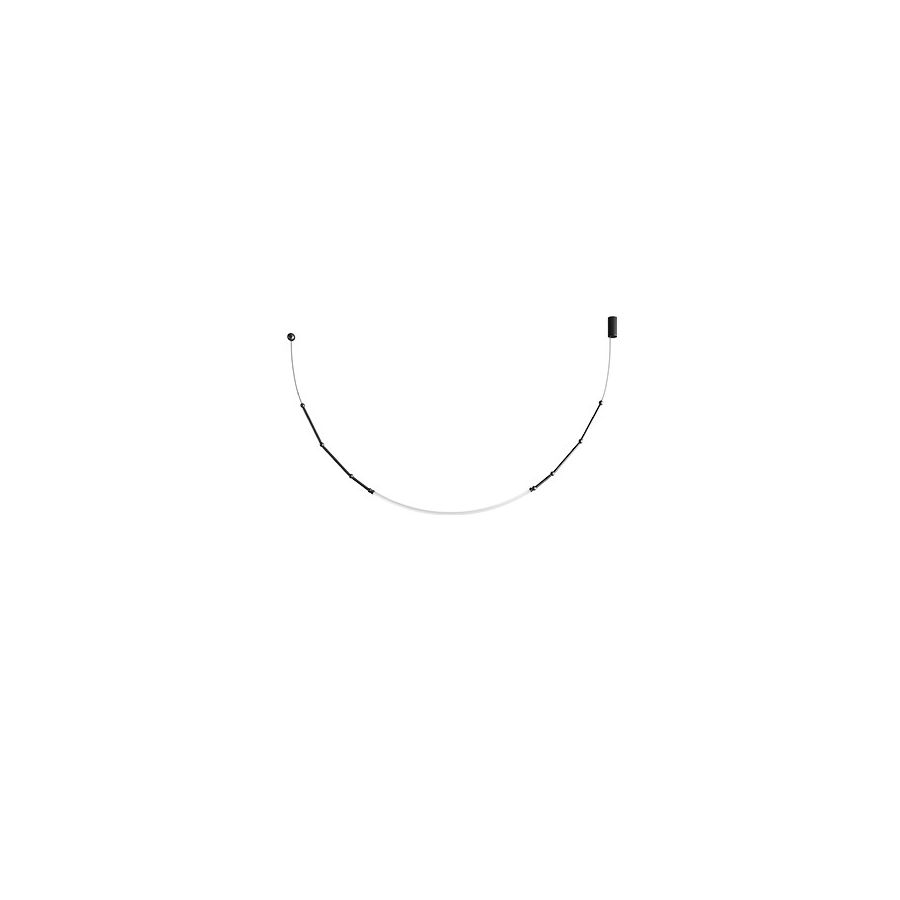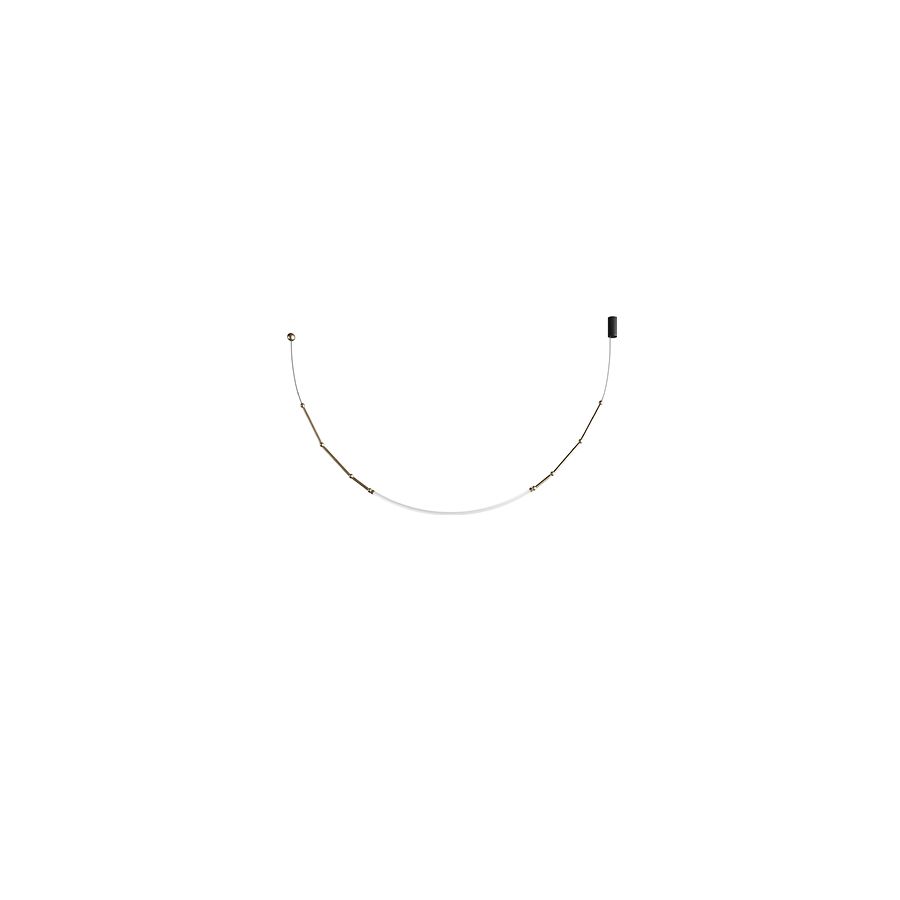 The lamps in this collection alternate between cylindrical bars and small spheres of anodized bronze or black aluminum, arranged like pearls in a ring on a wire supporting LEDs encased in a transparent, flexible silicone tube.