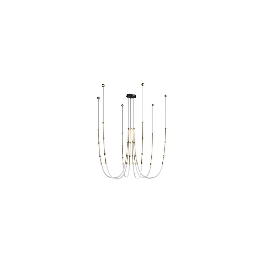 Customizable to the space to be illuminated, Leda is a cohesive and decorative chain that surrounds a universal symbol and alludes to the charming idea of the circle as a symbol of elegance and beauty.