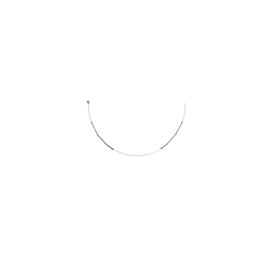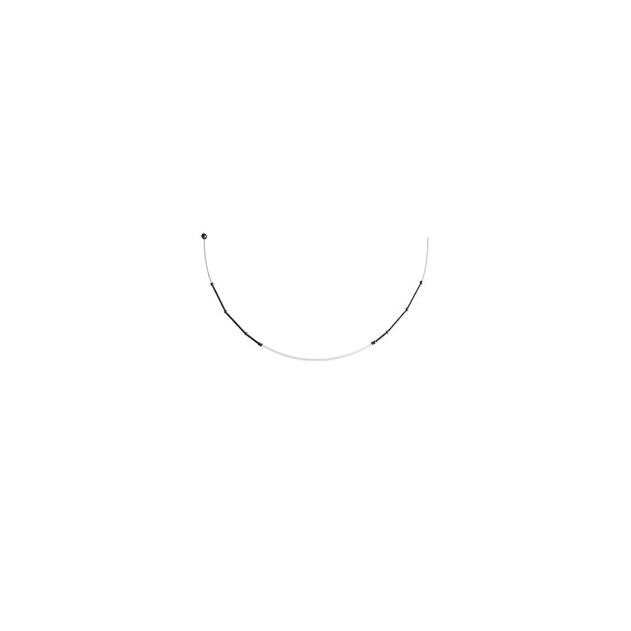 The lamps in this collection alternate between cylindrical bars and small spheres of anodized bronze or black aluminum, arranged like pearls in a ring on a wire supporting LEDs encased in a transparent, flexible silicone tube.