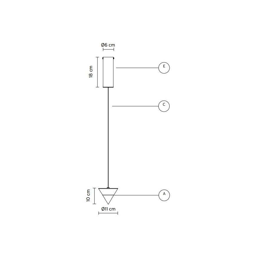 The cone diffuser is the starting point for climbing ceilings and walls, and can be suspended at various heights thanks to long thin cables that allow for different refined combinations. The cable can hold even two cone bodies that diffuse the light, one smaller with the beam pointing down and the other one, larger, pointing up, distanced as needed and attached to the ceiling or wall with special black aluminum clamp.