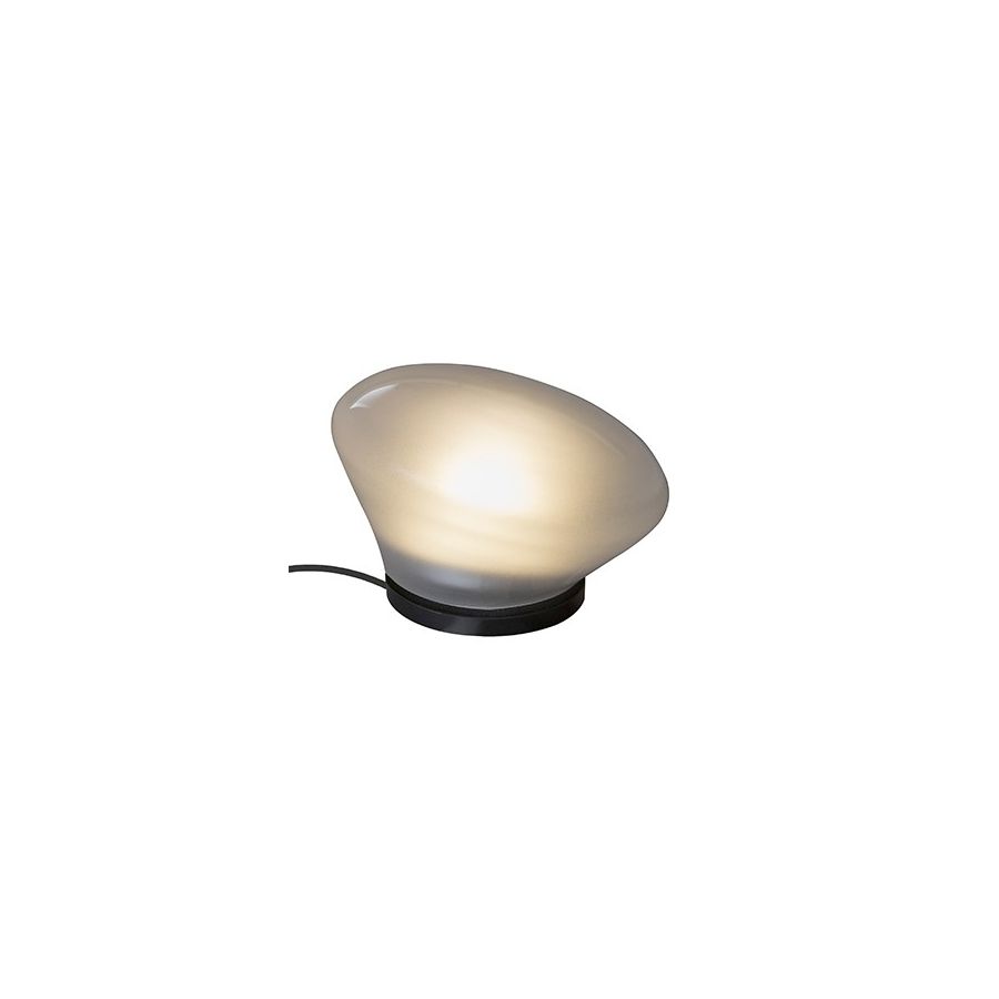 A circular shaped, mouthblown, thick glass spot, transparent or satin-finished. Agua can be used as a table or wall lamp to createa a halo on a wall or other reflective surface. The base is in black anodized aluminum with an internal cap diffuser to protect the LED light source. It can be placed in geometric or random patterns, as a one-point light on a side table, or in a hidden corner of the house or garden.