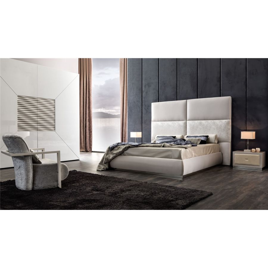 Unmistakable style with a strong and warm personality, for the two-door slidingwardrobe in which geometries of different sizes are outlined by the presence of the central square made with the carved waves typical of the Ebon collection. A stunning geometric layout embellished by the wooden waved central panel, typical of Ebon collection. A wide choice of finishigs and the doors to be realized also in sand blasted finishings for a stronger contrast with the central panel. Above all a truly versatile wardrobe and a striking statement for any bedroom setting.