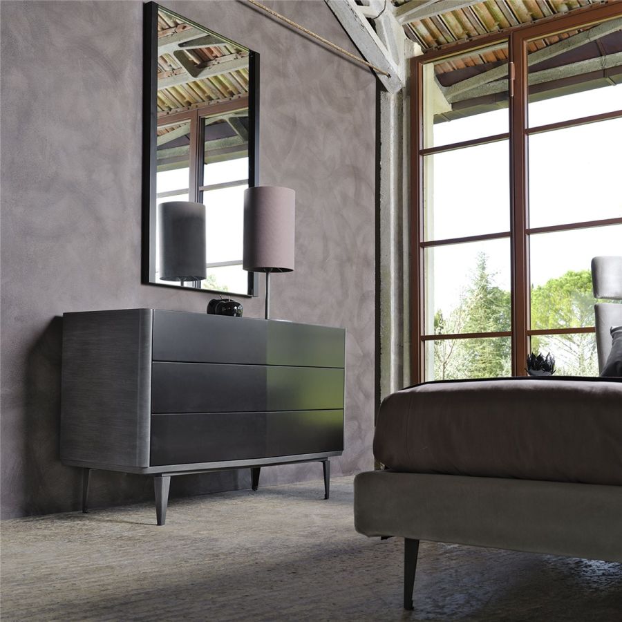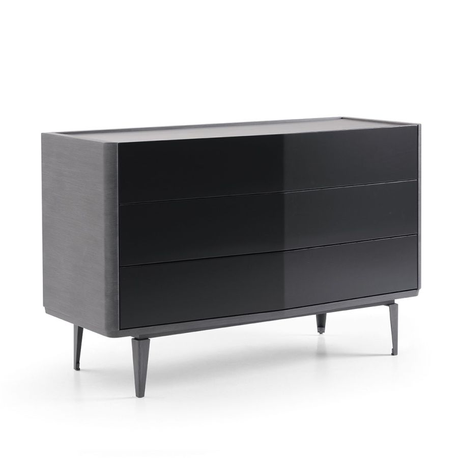3-drawers chest of drawers with simple, strong lines that characterise the Denver collection. Graceful but effective colour contrasts enhance the dynamism of the shapes and the play of proportions. Available with lacquered or veneered fronts in Canaletto Walnut or in Ash Inlaid . Top in lacquered wood, marble or mirror.
