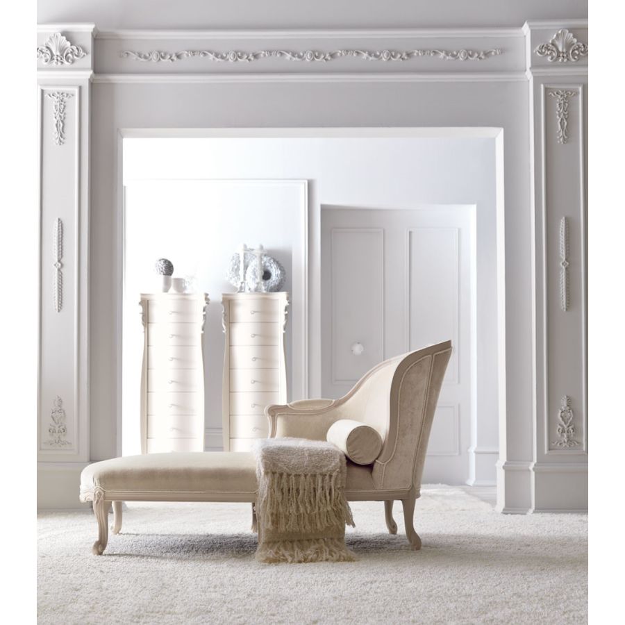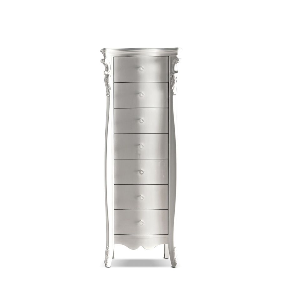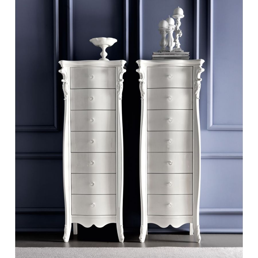 Chest of drawers inspired by classic styles. The use of carvings on the massive wooden structure, typical of the Renaissance, gives a refined and precious effect. Designed with graceful curves, the Melissa display cabinet is a romantic and refined solution for every dining or living room.
