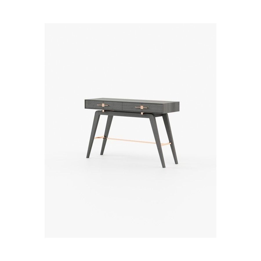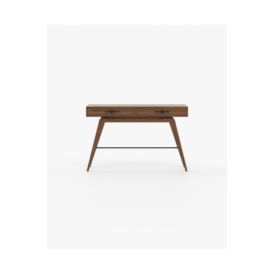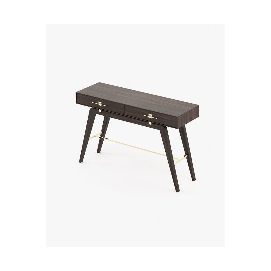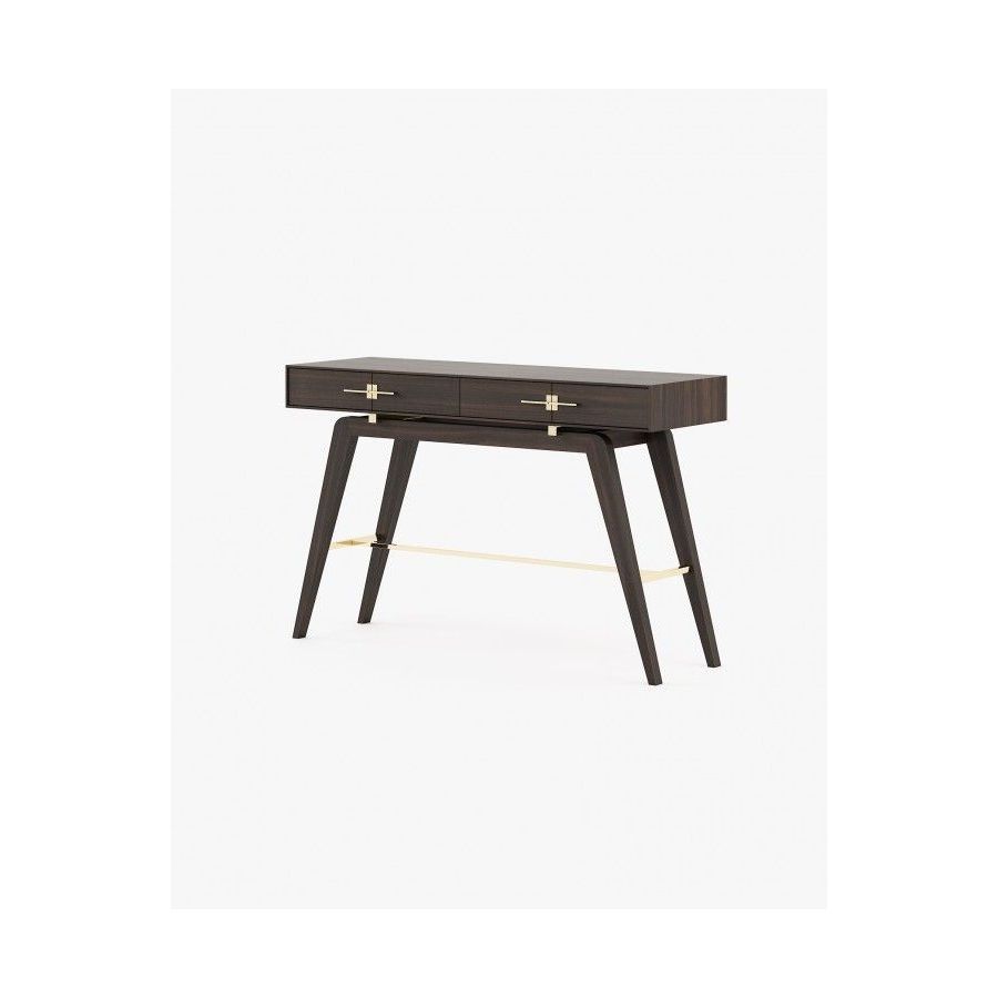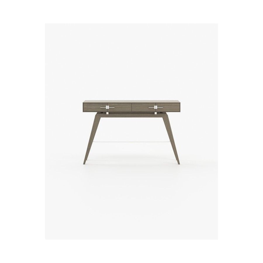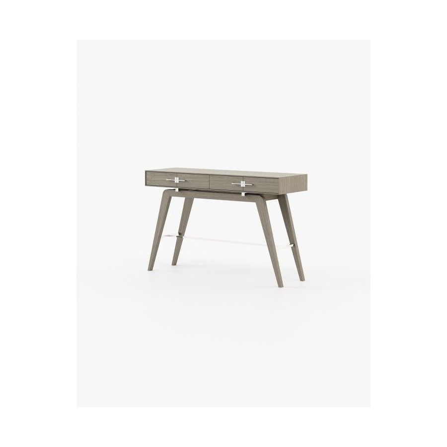 The Niels console is a tribute to the beauty of Italian design. This contemporary wooden piece has striking stainless steel details and is a great addition to any open space decoration. The angled legs create a unique vintage look while the two drawers provide ample storage space.