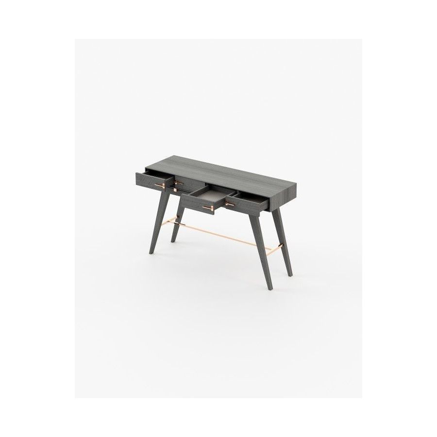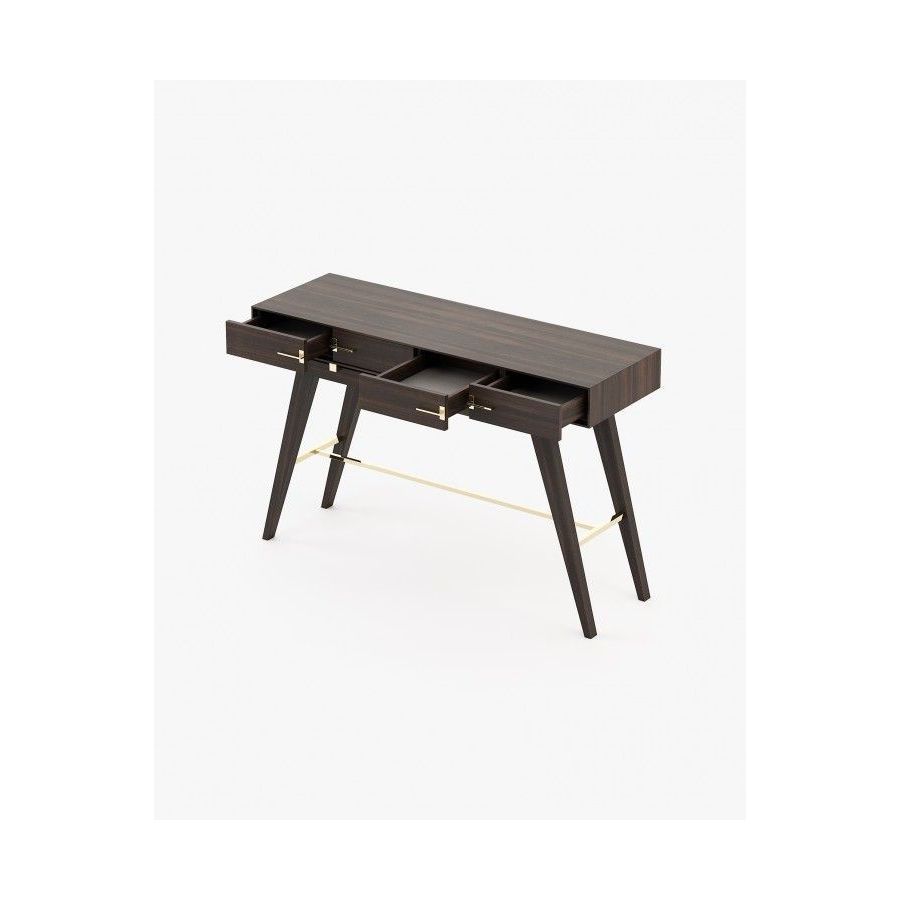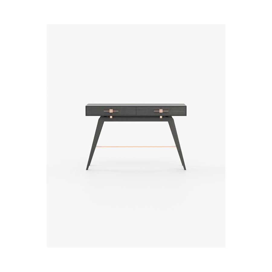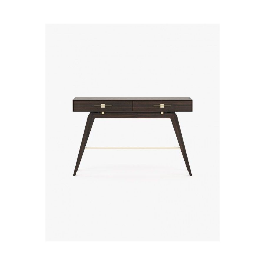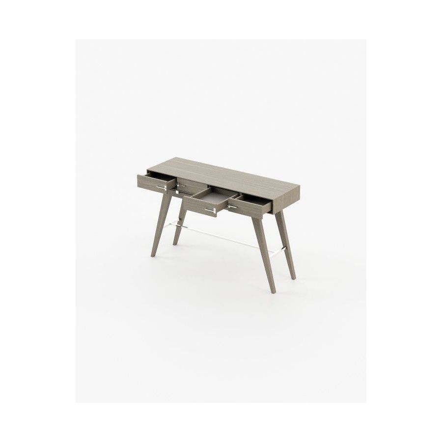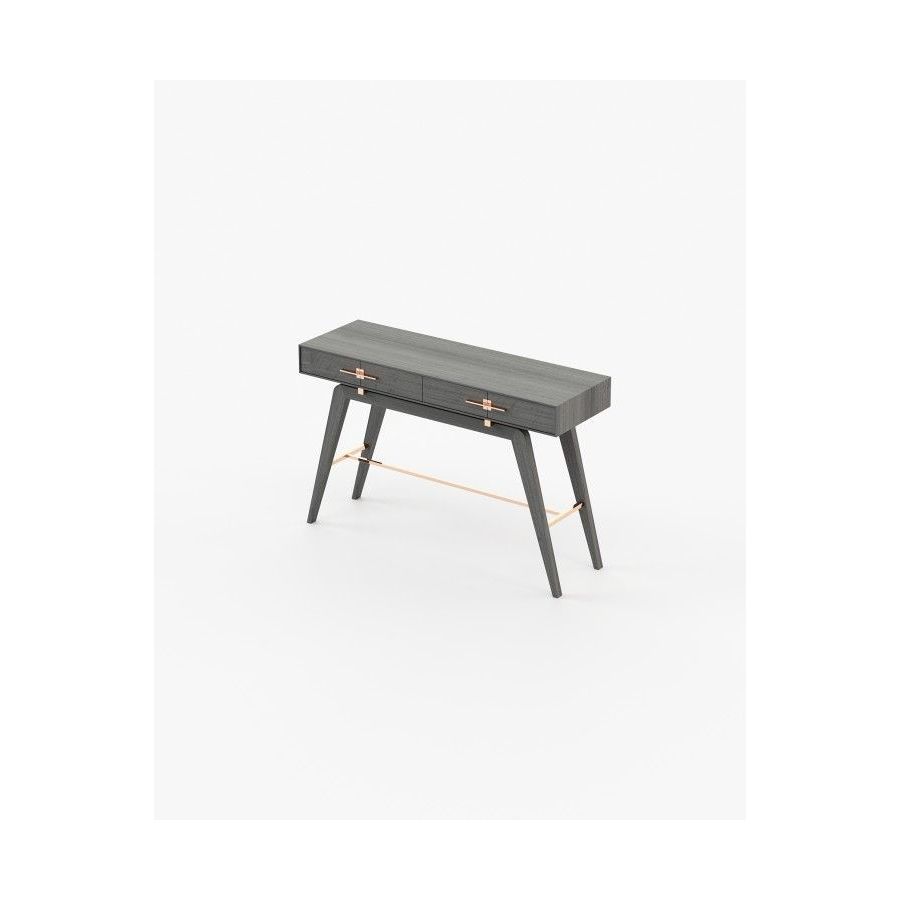 The Niels console is a tribute to the beauty of Italian design. This contemporary wooden piece has striking stainless steel details and is a great addition to any open space decoration. The angled legs create a unique vintage look while the two drawers provide ample storage space.