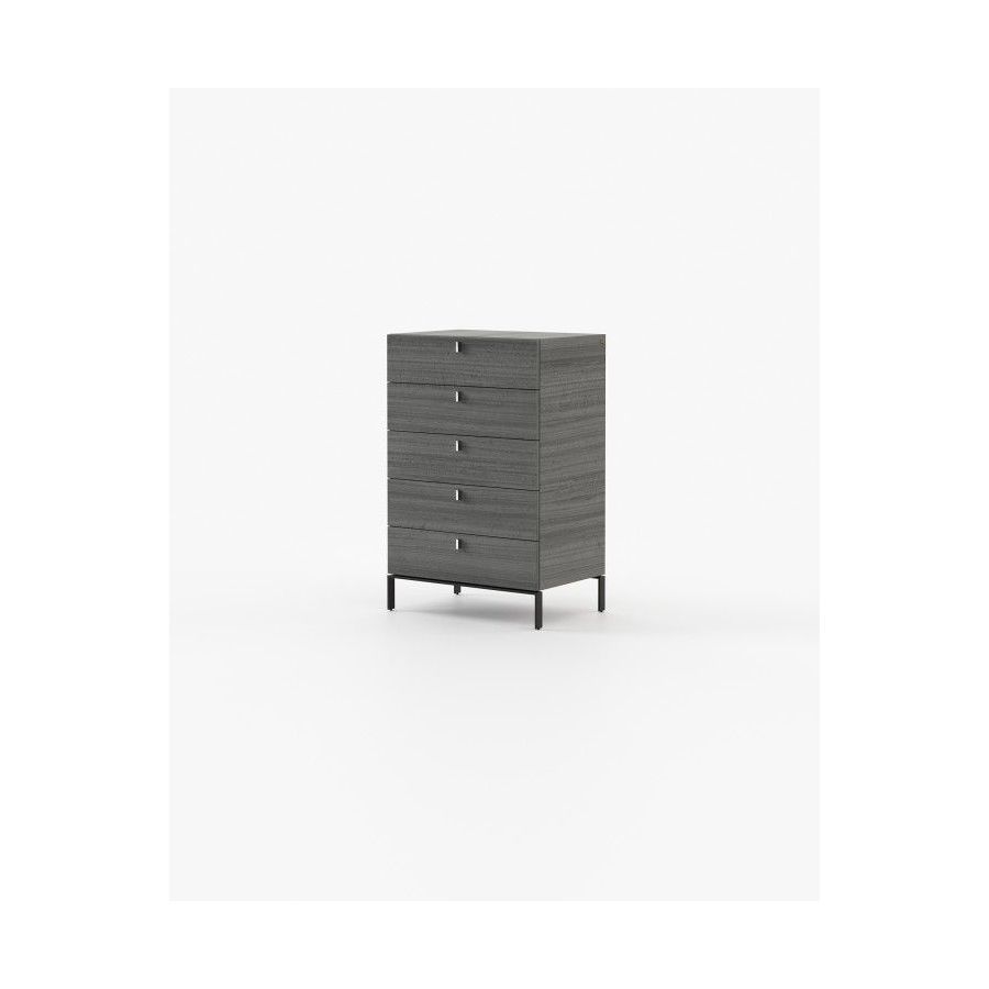 The Amber tallboy is a clean-lined and rectangular piece that brings a streamlined style to any bedroom. It features a neutral finish, steel accents, and a wooden structure that make it versatile and decorative.