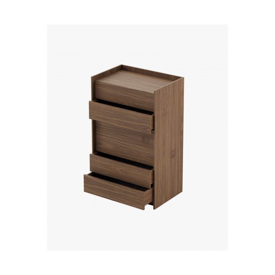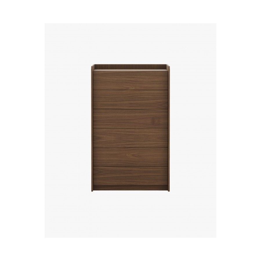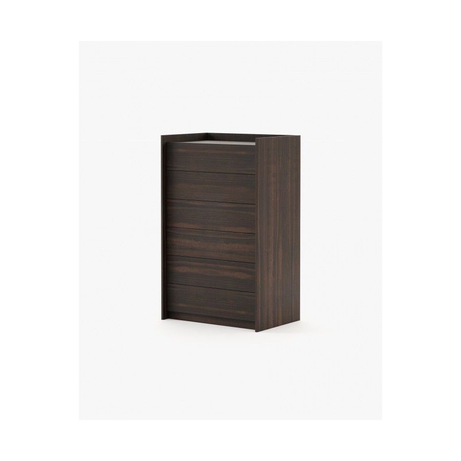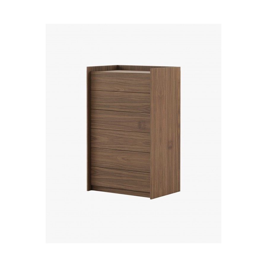 The Endy tallboy is a piece that maximizes vertical space with six large drawers without handles, and enhances the beauty of any bedroom.