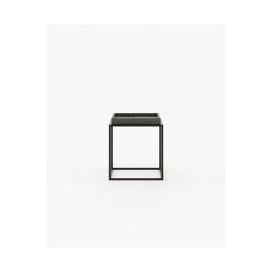 The Aura side table is an elegant home accessory, featuring a striking square shape and a natural wood finish, fitting any decor style.
