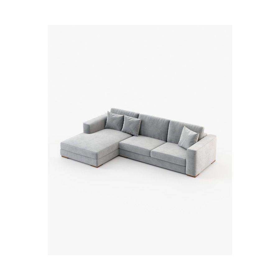 Grey sofa with chaise longue will triumph in any interior design project. This piece, customizable in many colours, creates an amazing and inviting layout of the living room. Definitely, a three-seat sofa for open areas and timeless style.