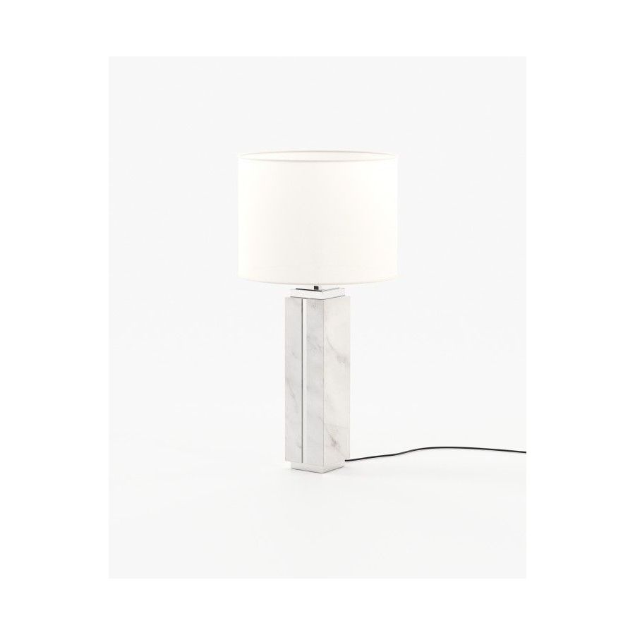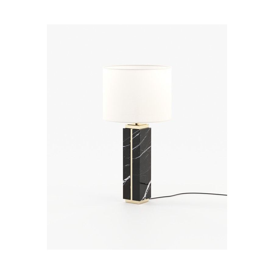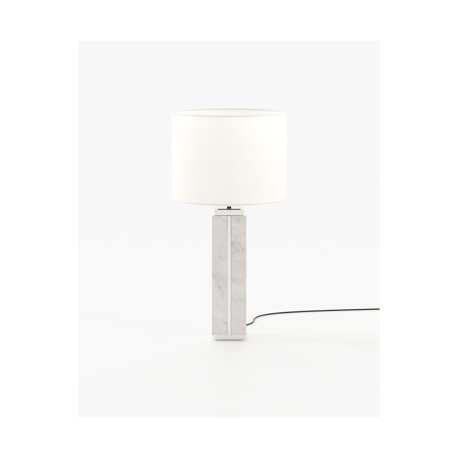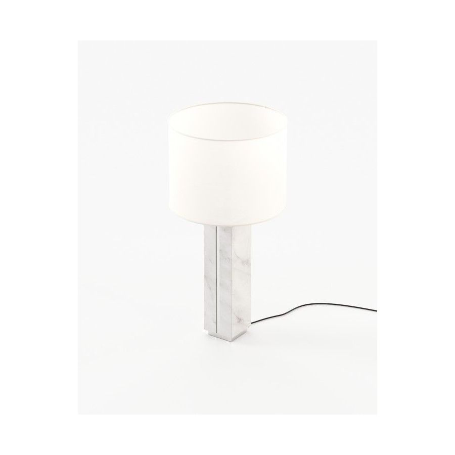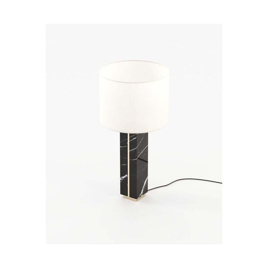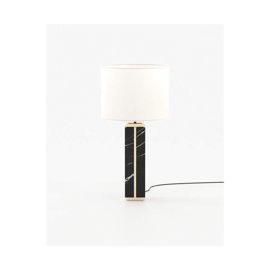Jack table lamp is a majestic tall table lamp handmade in marble and featuring metallic details, ideal for bedrooms, entrance halls, and living rooms.