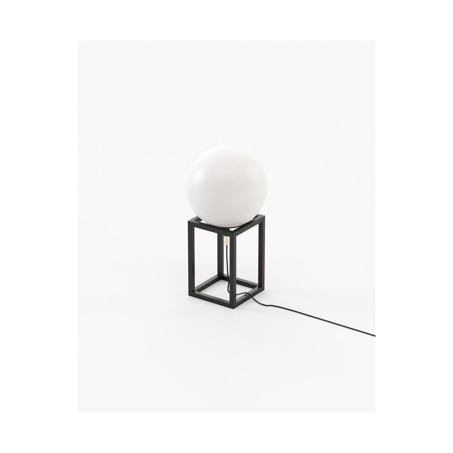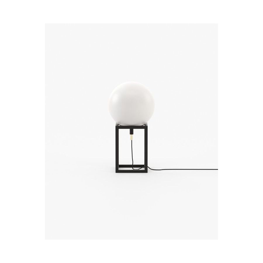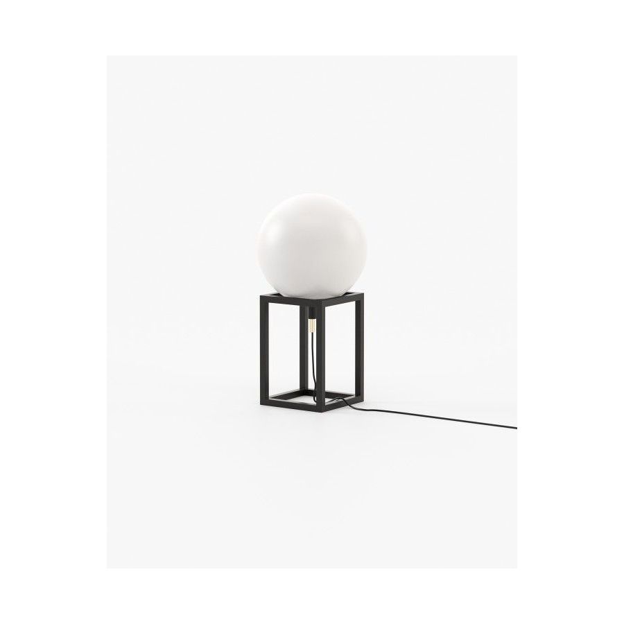 The Jones table lamp is a versatile piece suitable for any room. Its minimalist iron structure in a square shape creates new perspectives on ambient lighting, while the round transparent glass bulb adds contrast.
