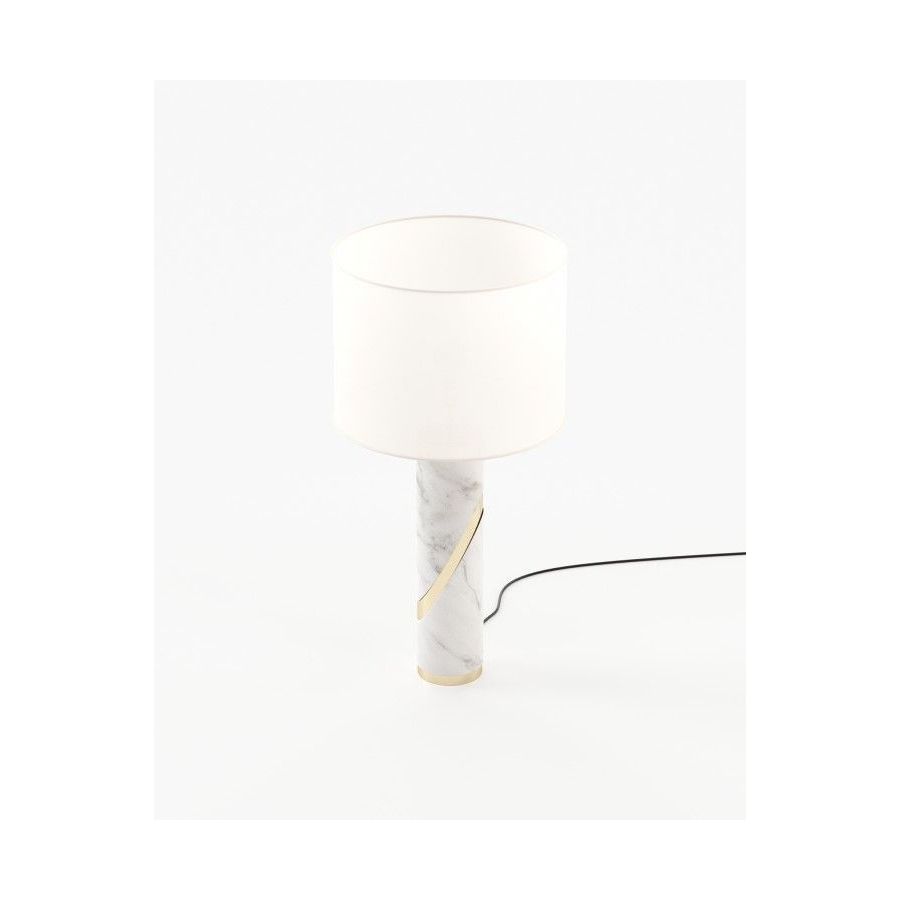 Martin table lamp is a classic tall lamp with a cylindrical marble structure and metallic details, customisable and perfect for modern and contemporary interior design projects.