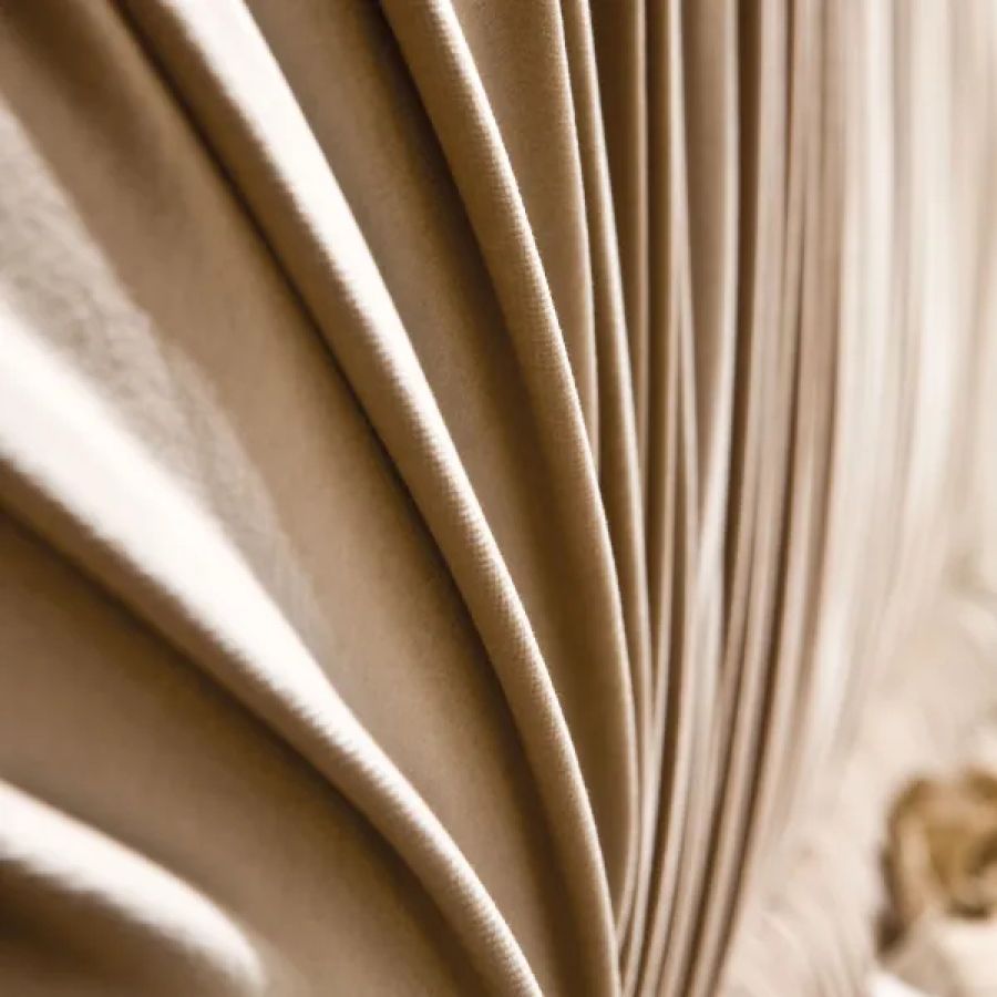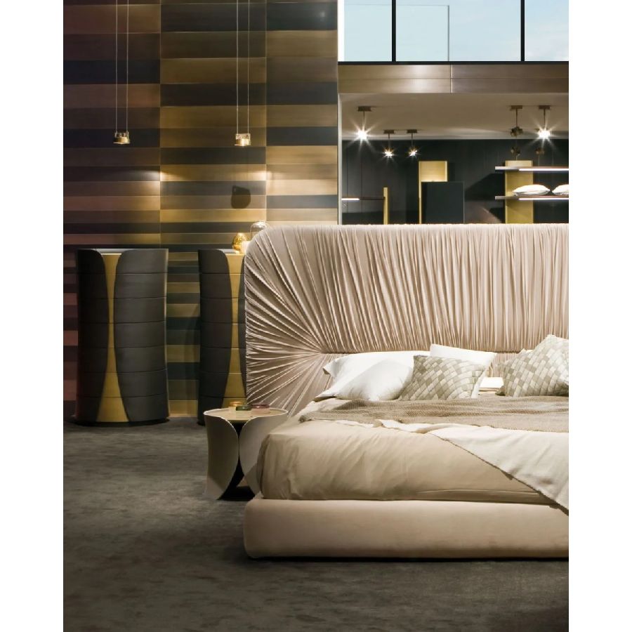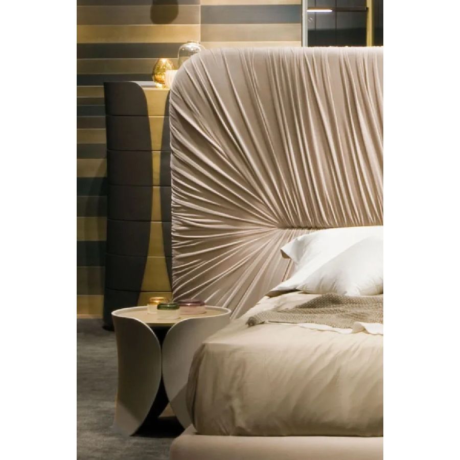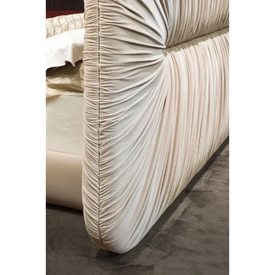 Double bed with padded headboard covered with in a soft drapery made in leather, matt 'Lario' or shiny 'Roxana' velvet, or in fabric.