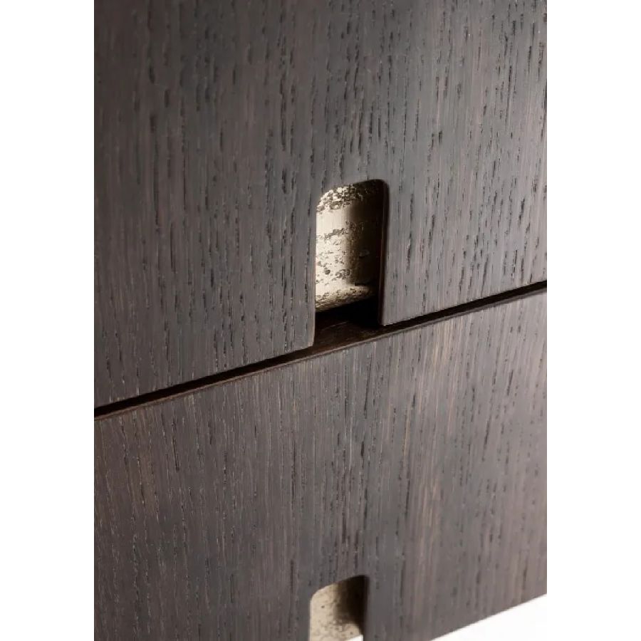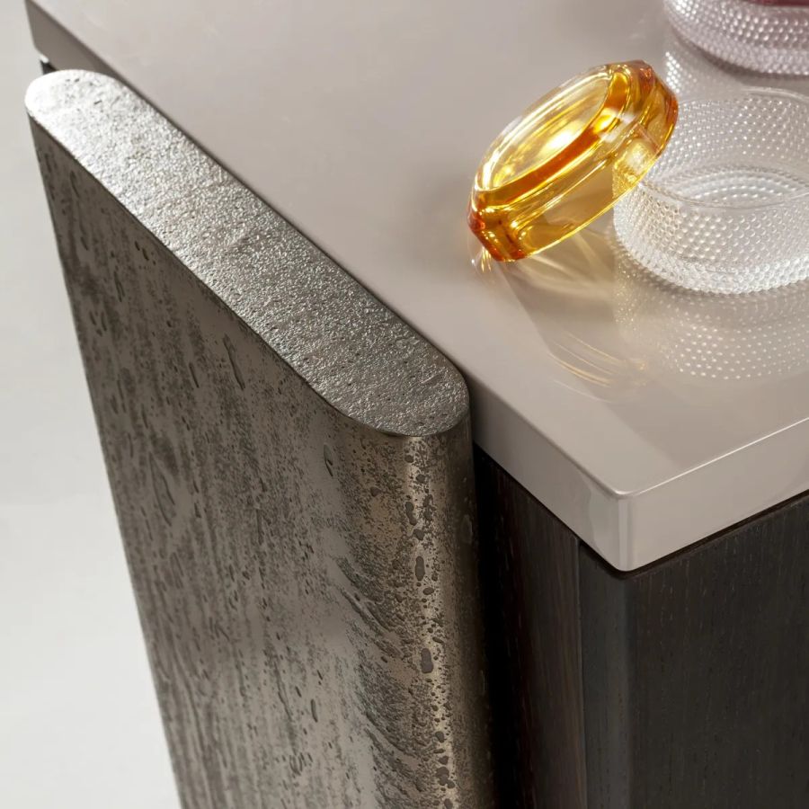 Top and chest of drawers in plain, dyed or lacquered wood in all RAL colours. Sides and handles available in brushed 'gold' or in liquid metal Raptor.