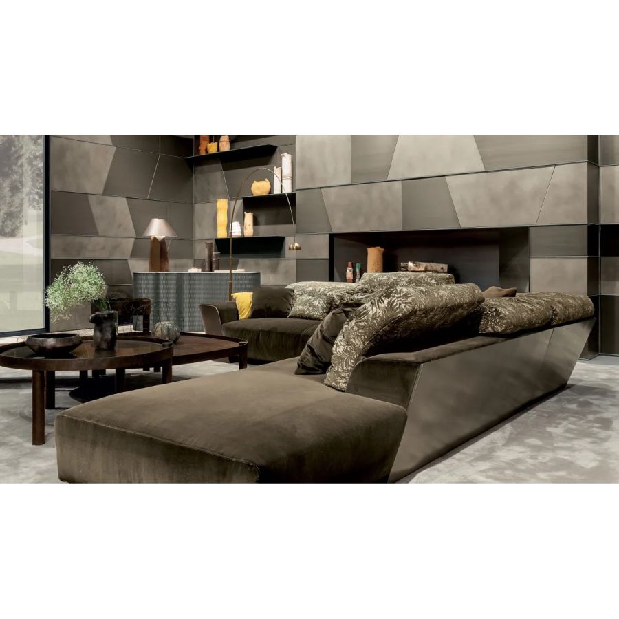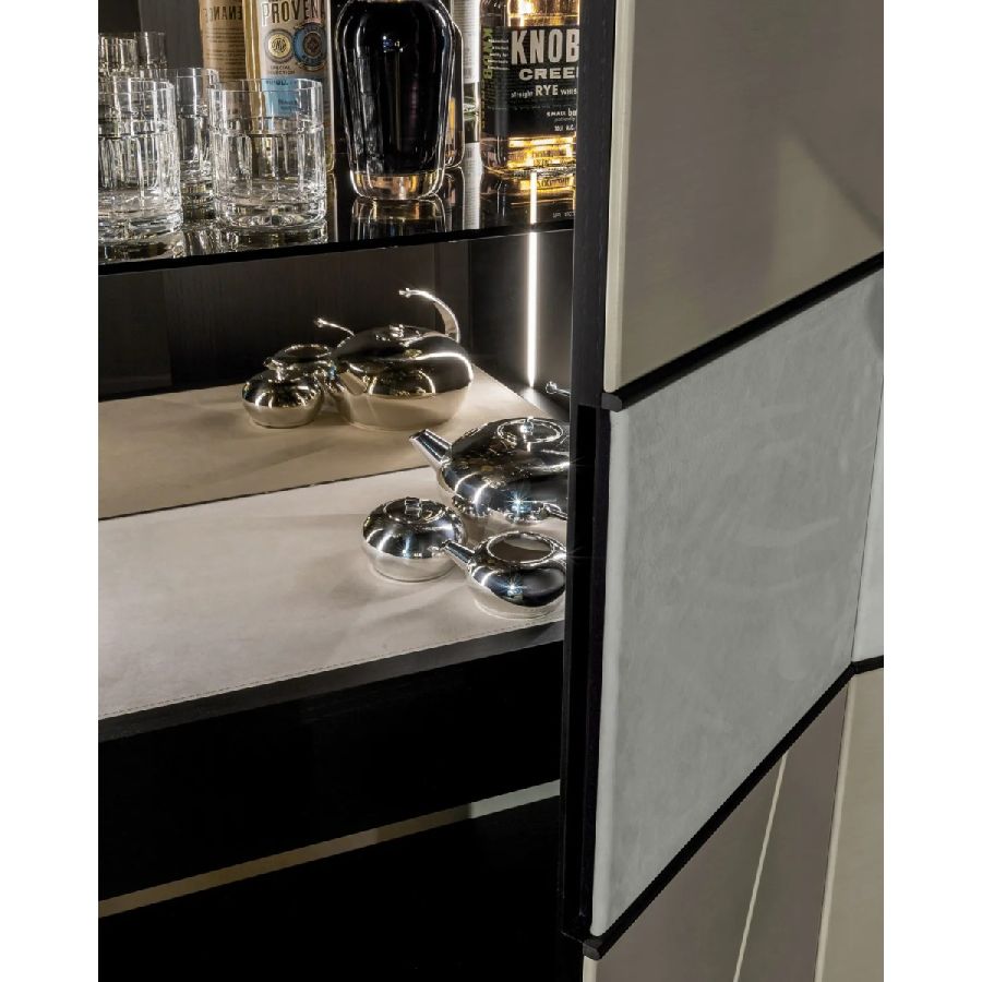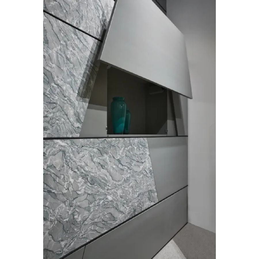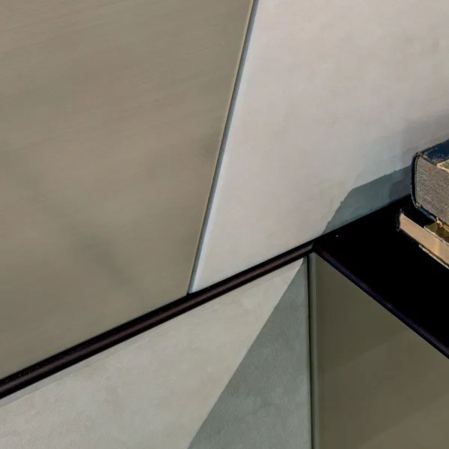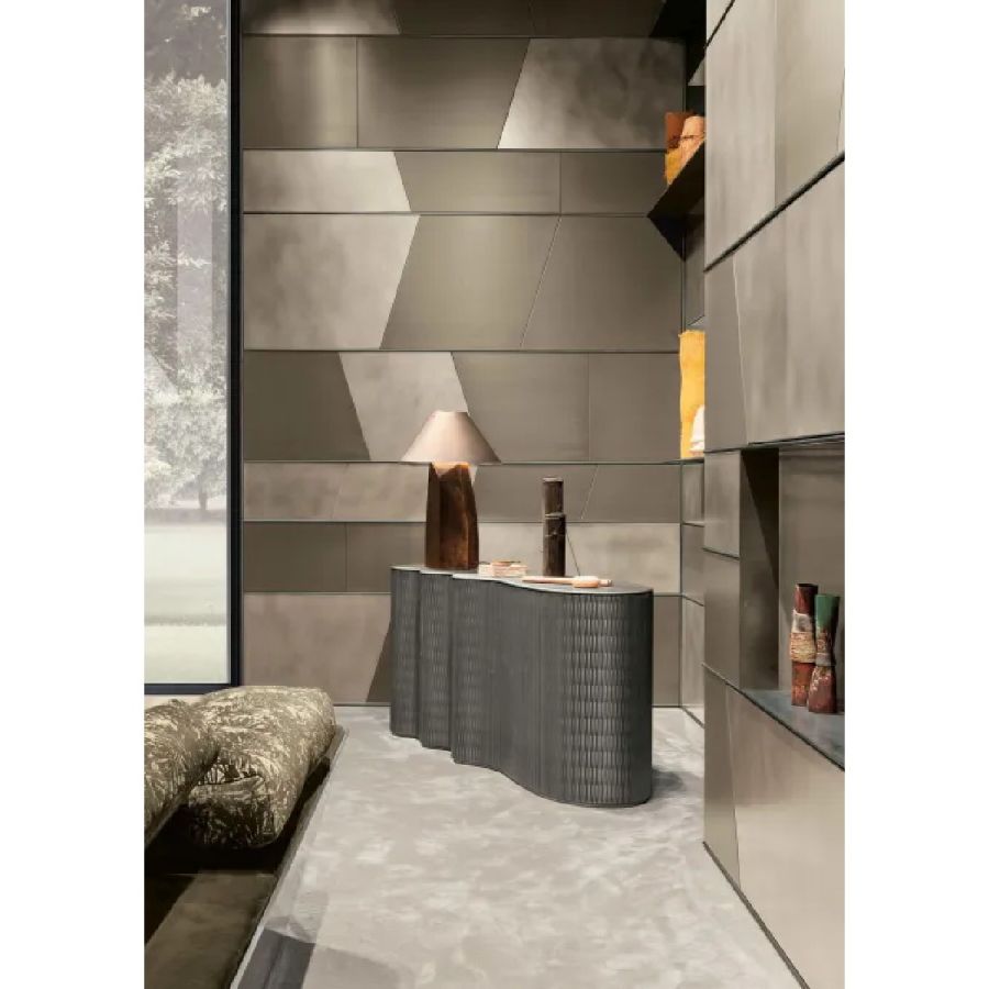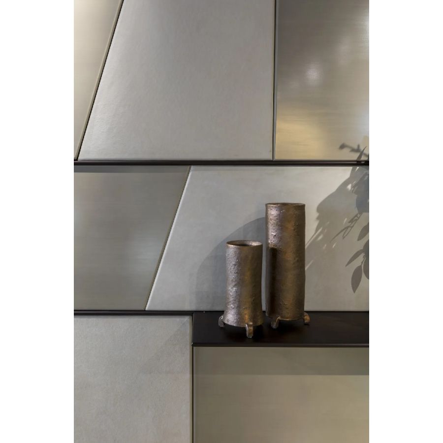 Customizable in all the essences of the collection, lacquered and aniline dyed in all RAL colours or in leather, the Terre cabinet system is available in combination with integrated wall panels and doors.