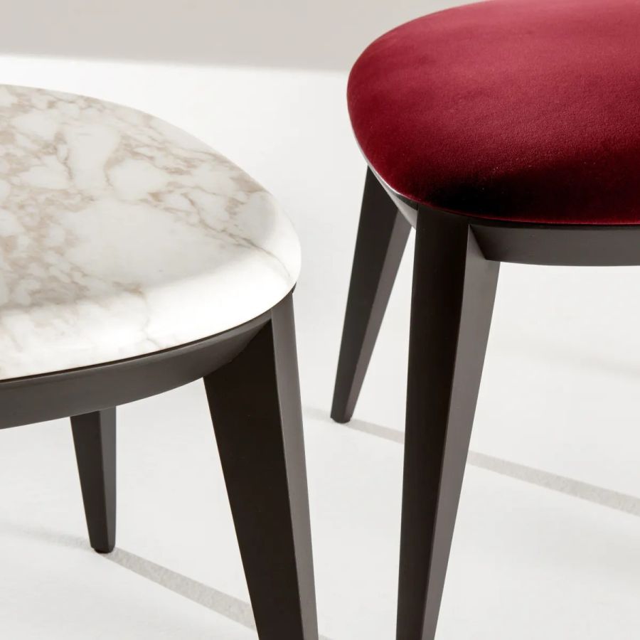 Customizable with structure in Lacca 61, in stained, painted or lacquered wood in all RAL colours, and also available in the armchair, chair, pouf and stool versions.