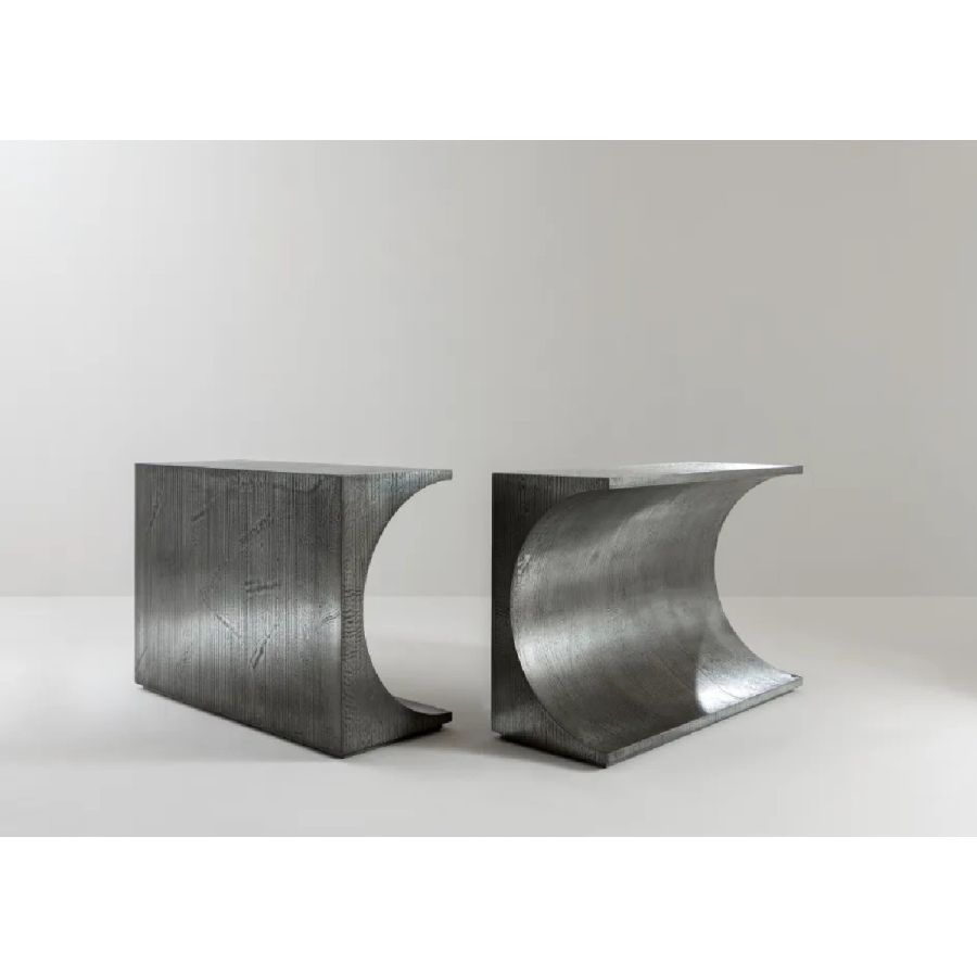 Structure available in all the woods of the collection, in aniline-dyed oak or in brushed matt lacquered wood in all RAL colours. Also available in liquid metal Raptor tin and bronze.