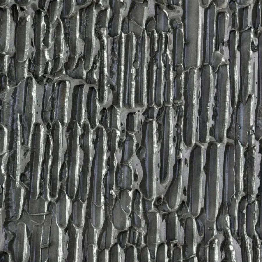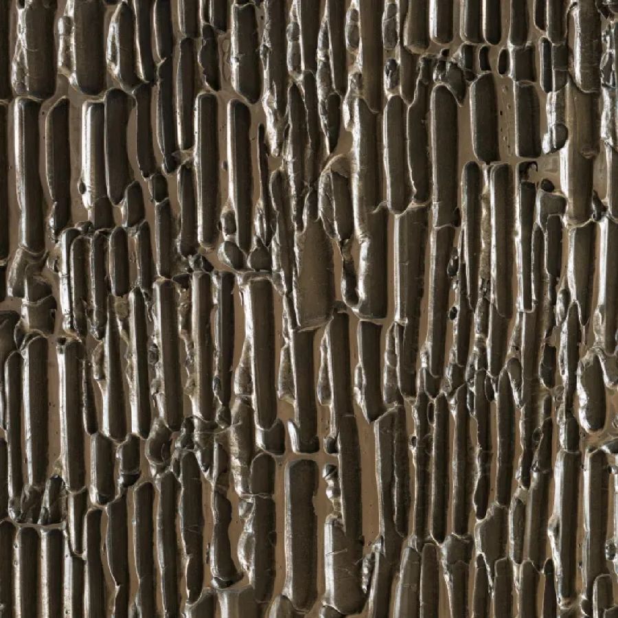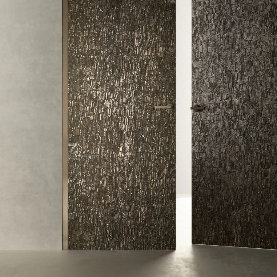 Hinged door in wood with Liquid Metal finish and Corteccia texture on the visible side.