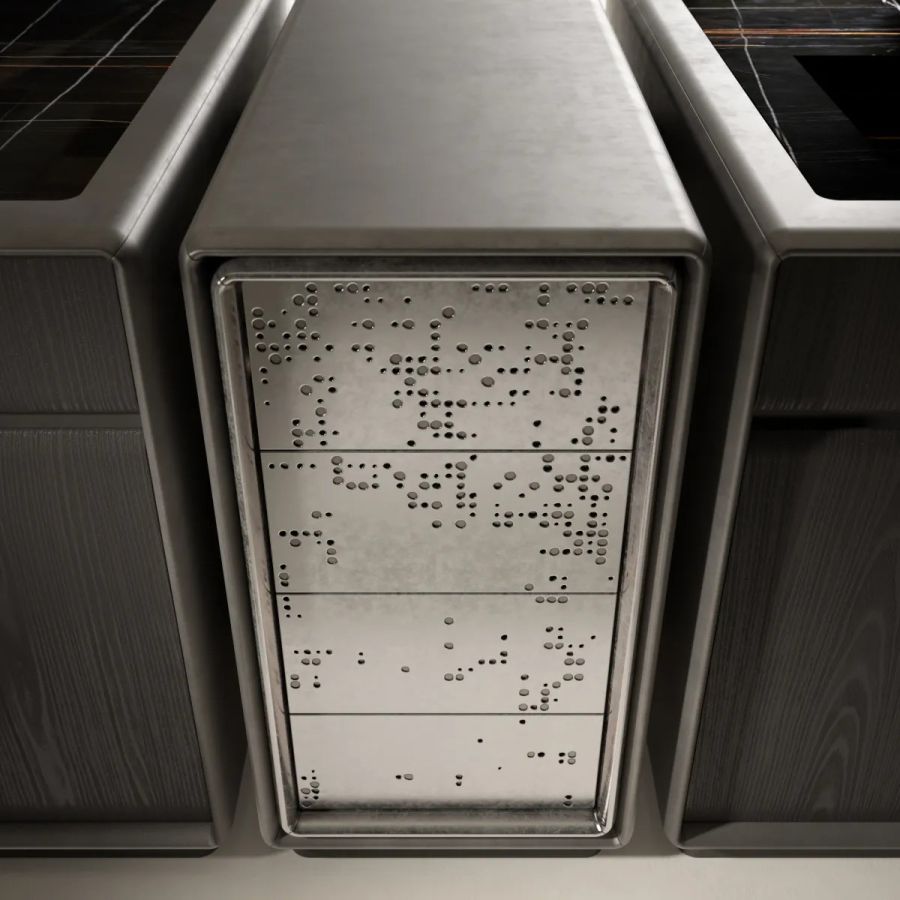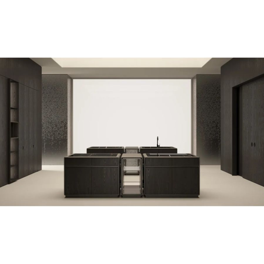 The Laurameroni Kitchens project offers modular solutions that can be customized in components, accessories, materials, and finishes, ensuring a fully tailored spatial organization.