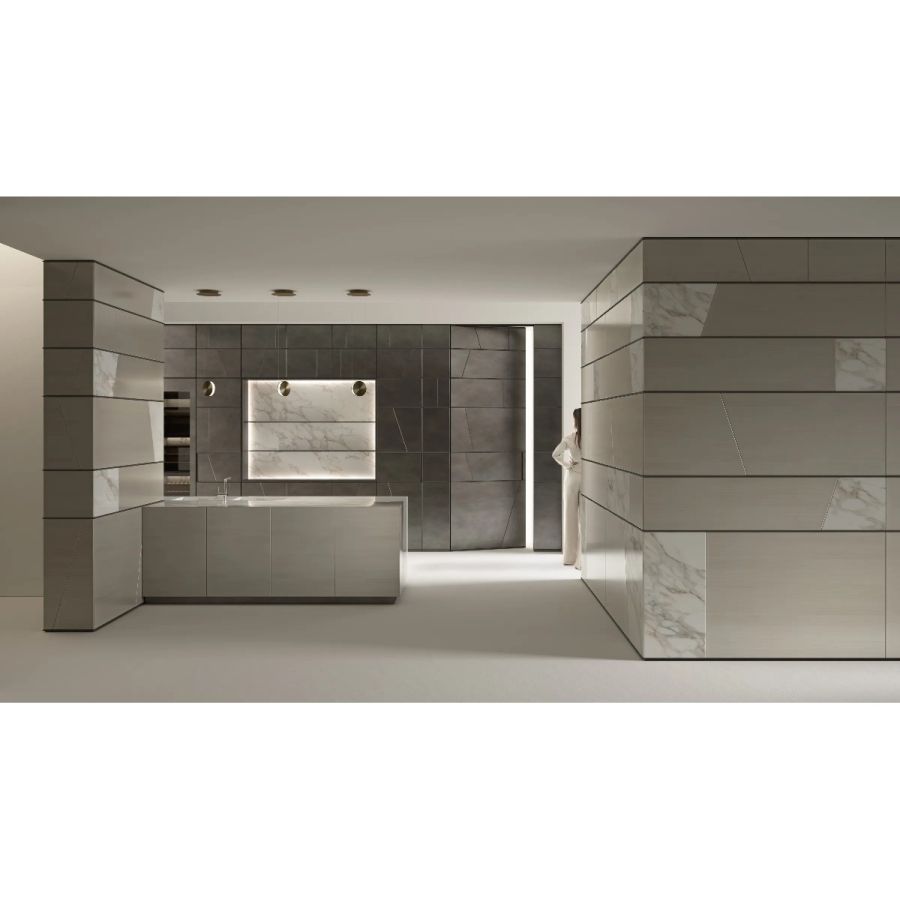 The Laurameroni Kitchens project offers modular solutions that can be customized in components, accessories, materials, and finishes, ensuring a fully tailored spatial organization.
