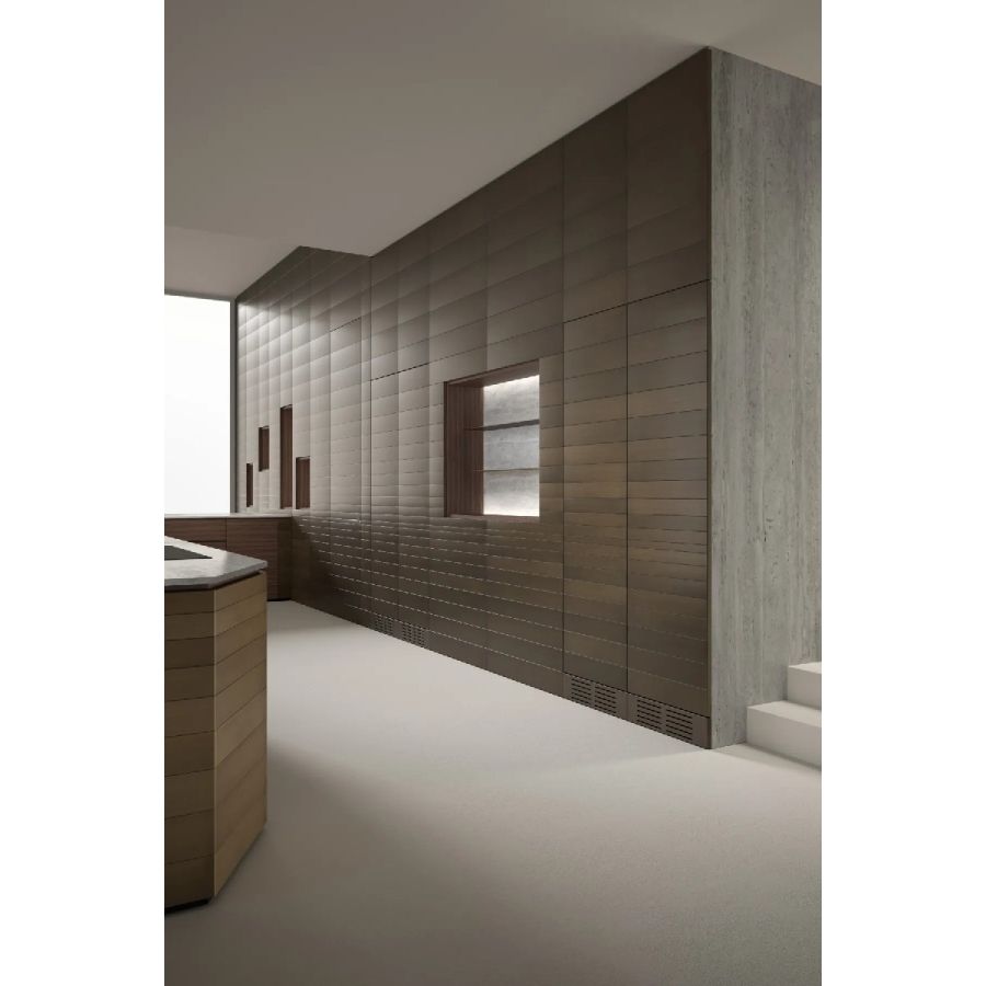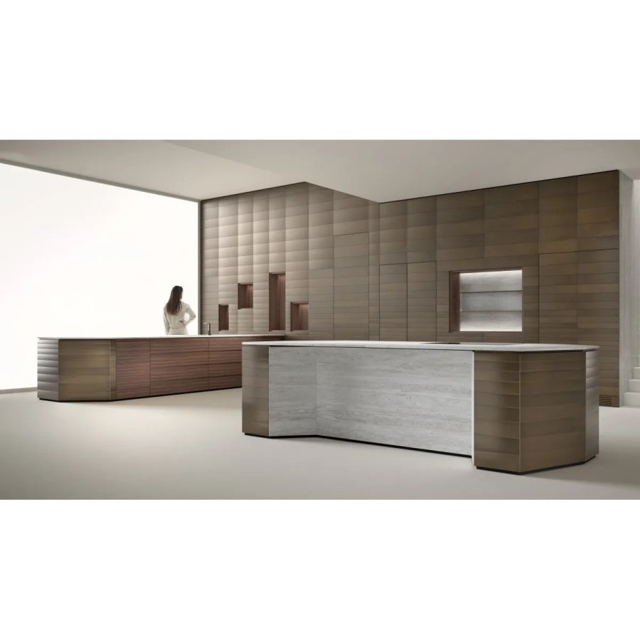 The Laurameroni Kitchens project offers modular solutions that can be customized in components, accessories, materials, and finishes, ensuring a fully tailored spatial organization.