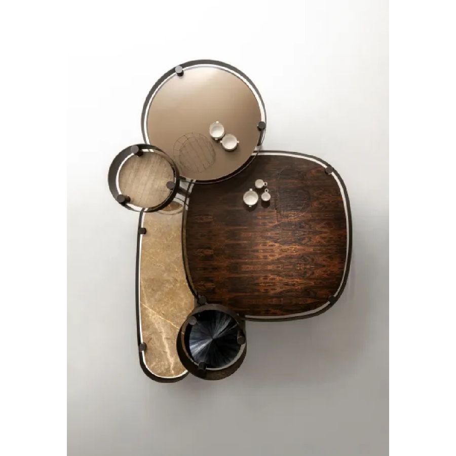 Top available in all the essences of the collection and in dyed or special wood, in special finishes, in marble and in back-lacquered glass.